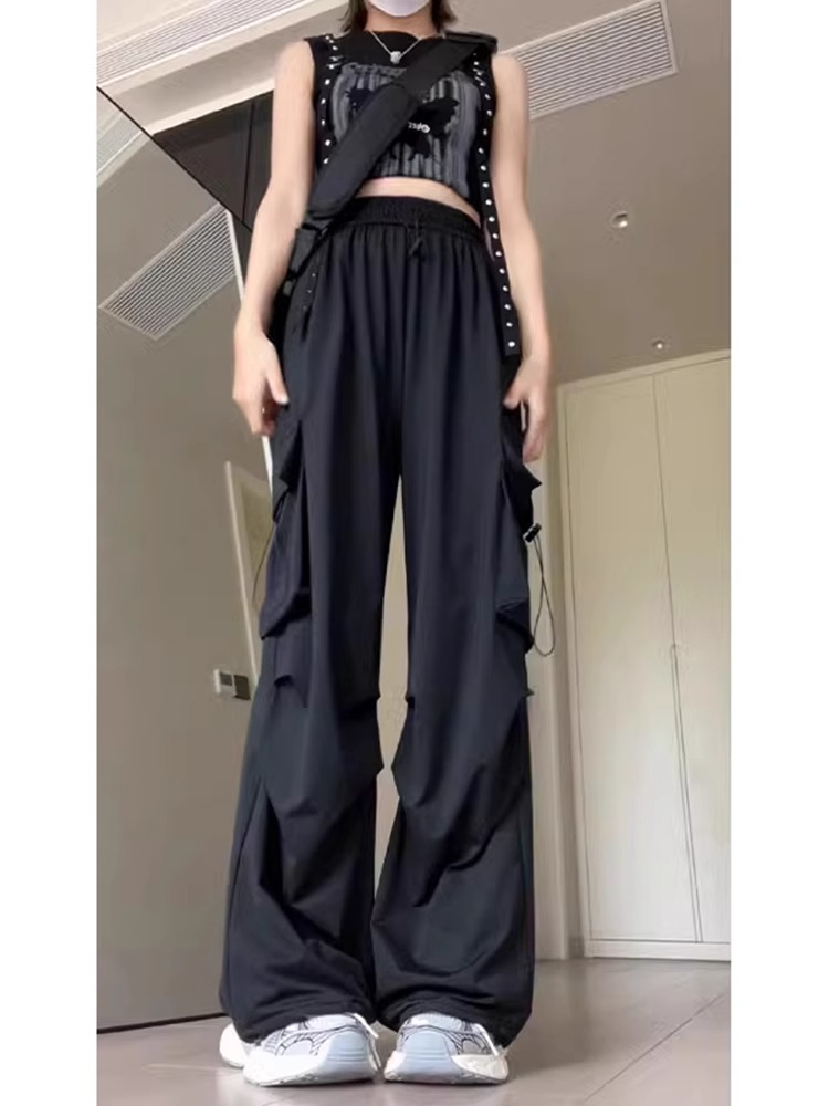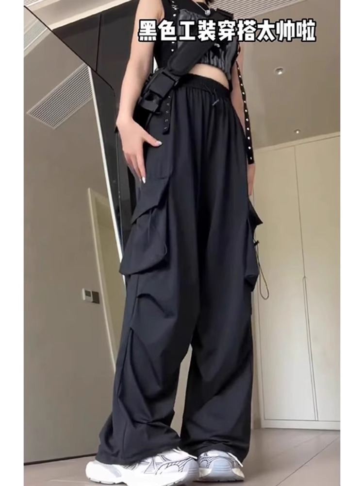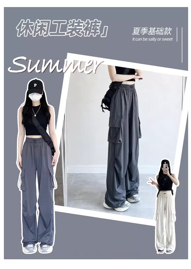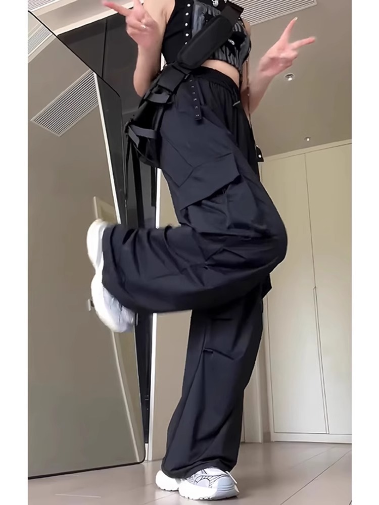 ナイロン工装ズボン女性夏薄手アメリカストレートパラシュートズボン高腰レジャー広脚速乾運動