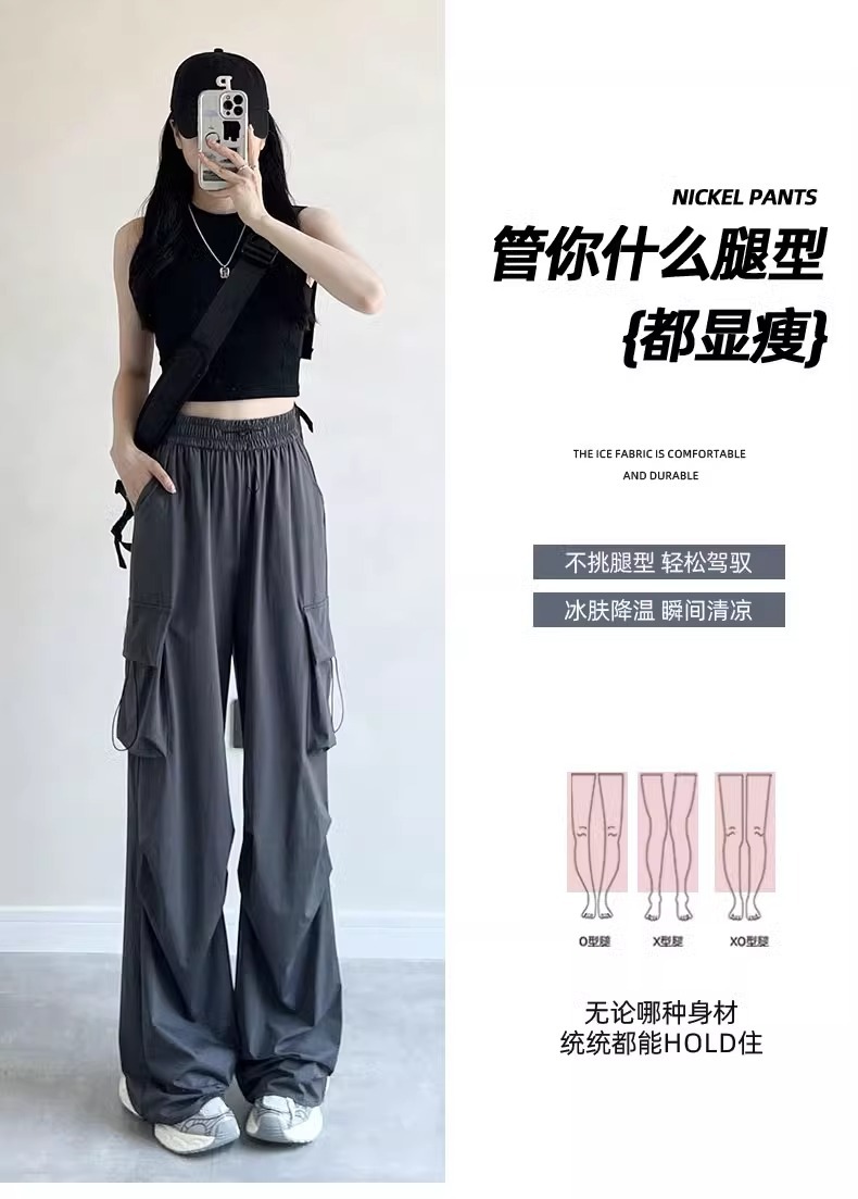 速乾工装ズボンの女性の夏の薄いタイプの2025新型の広腿のズボンの小さい背の氷の糸の屋外の登山の突撃のスポーツのズボン