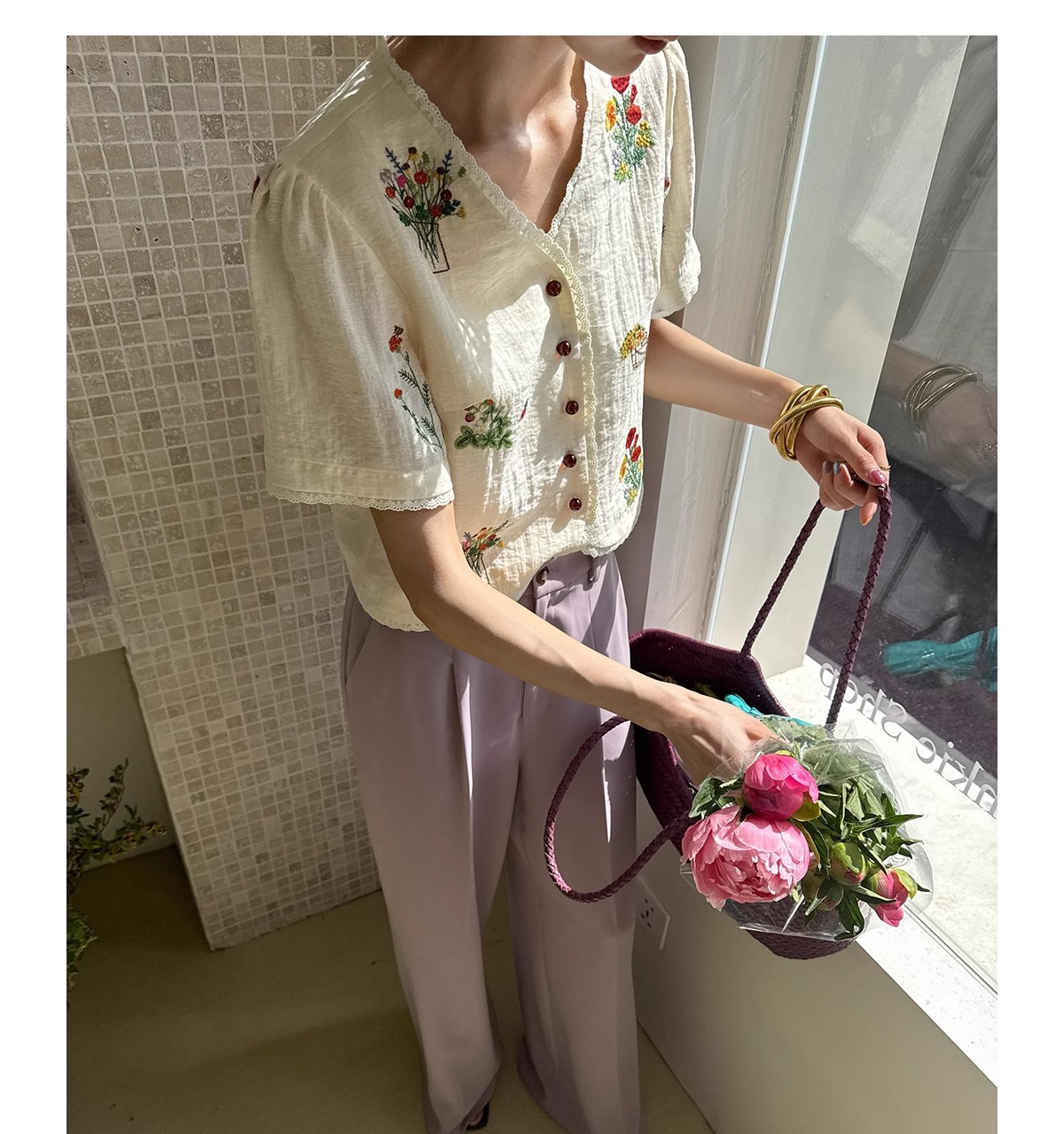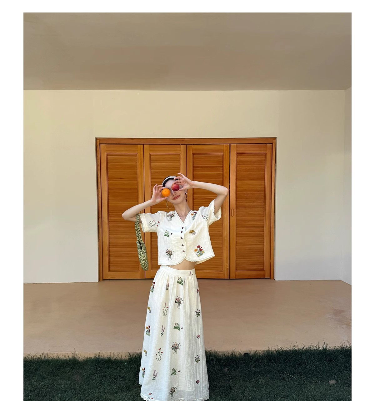 【事事幽】亚麻重工绣花短袖T恤女夏慵懒风半身裙套装OOTD一整套