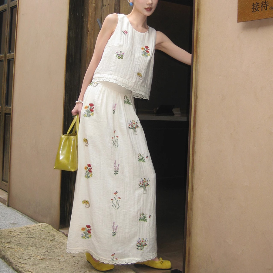 Luqing Yishishiyou 5.28 20:00 新しいリネンヘビーウェイト刺繍デザイントップとスカートスーツ女性用