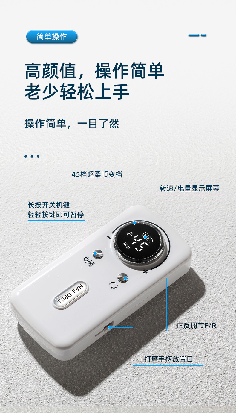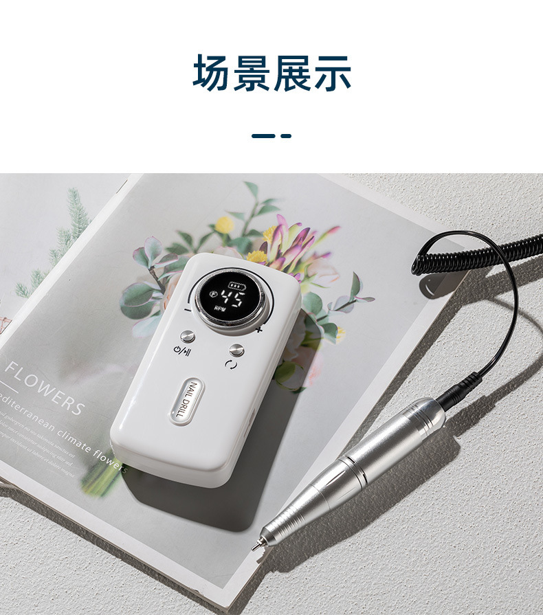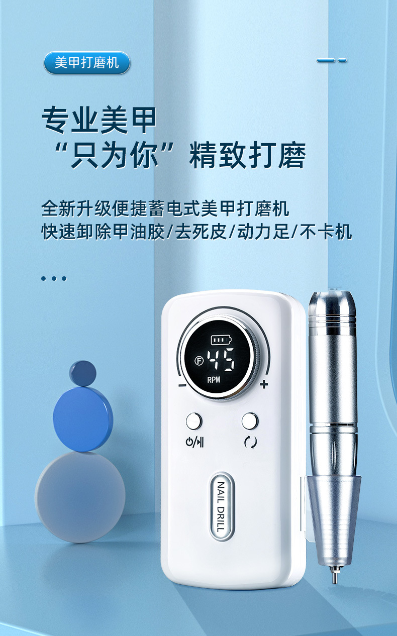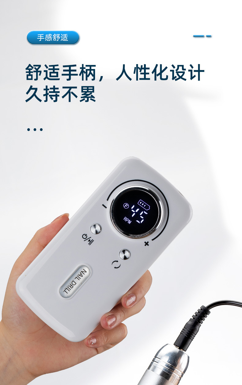 跨境新款V2美甲打磨机专业卸甲45000转蓄电便携式电动指甲磨甲器