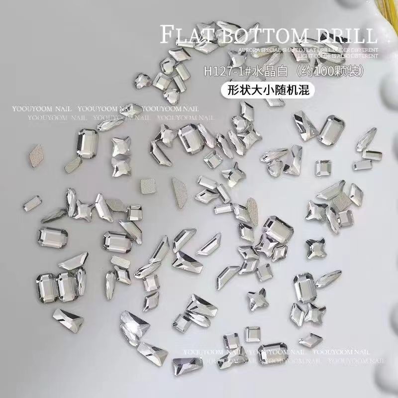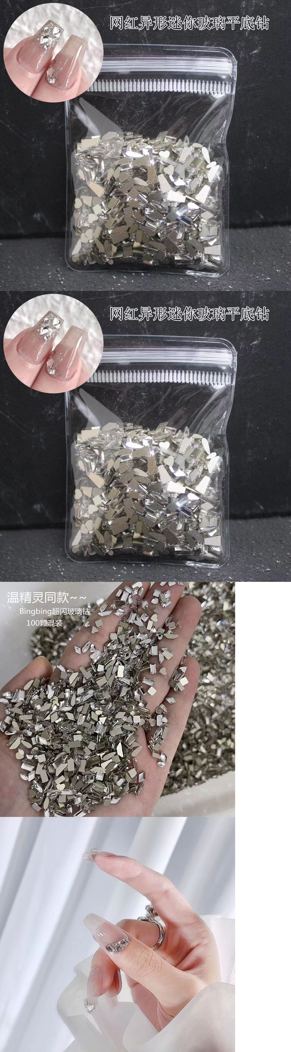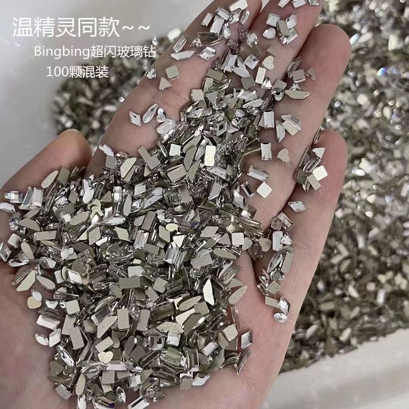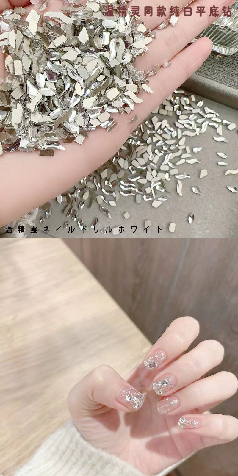 ウェンジェンジンと同じスタイルの小さな平底特殊形状ダイヤモンドマニキュア超光沢のある白いミニ混合光沢のあるダイヤモンドネイル装身具