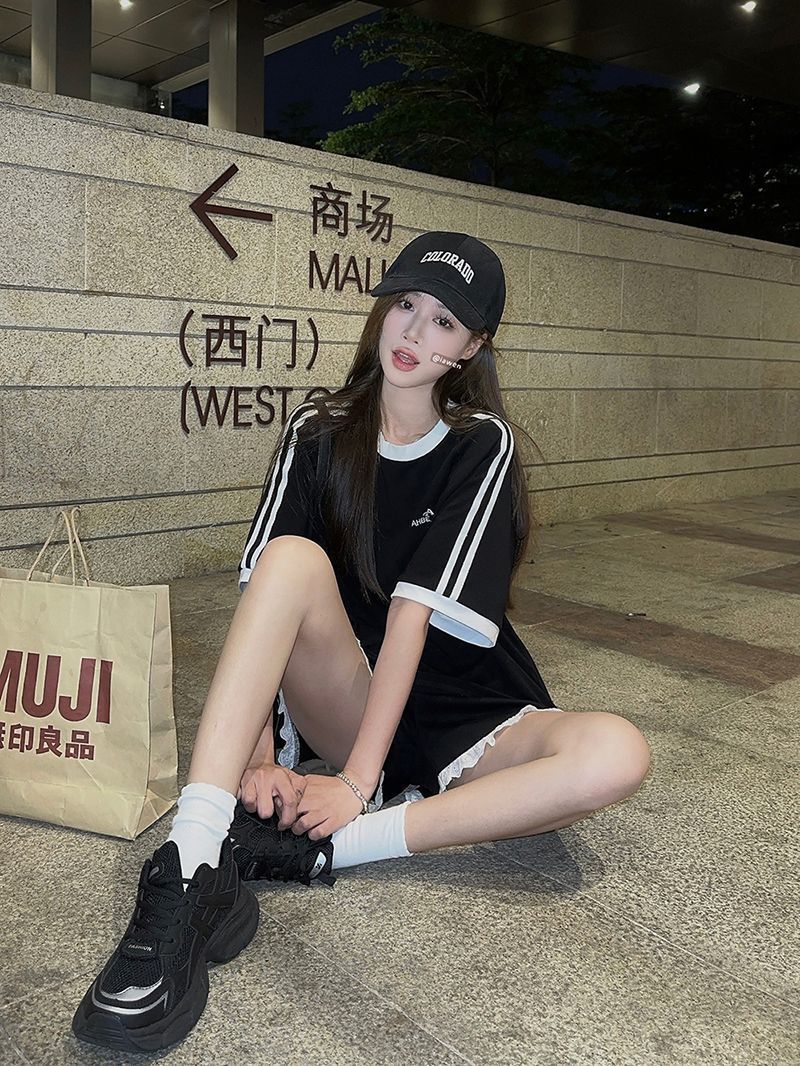 カジュアルなランニングのスポーツウェアのスーツの女性の夏の韓国版はゆったりしています。