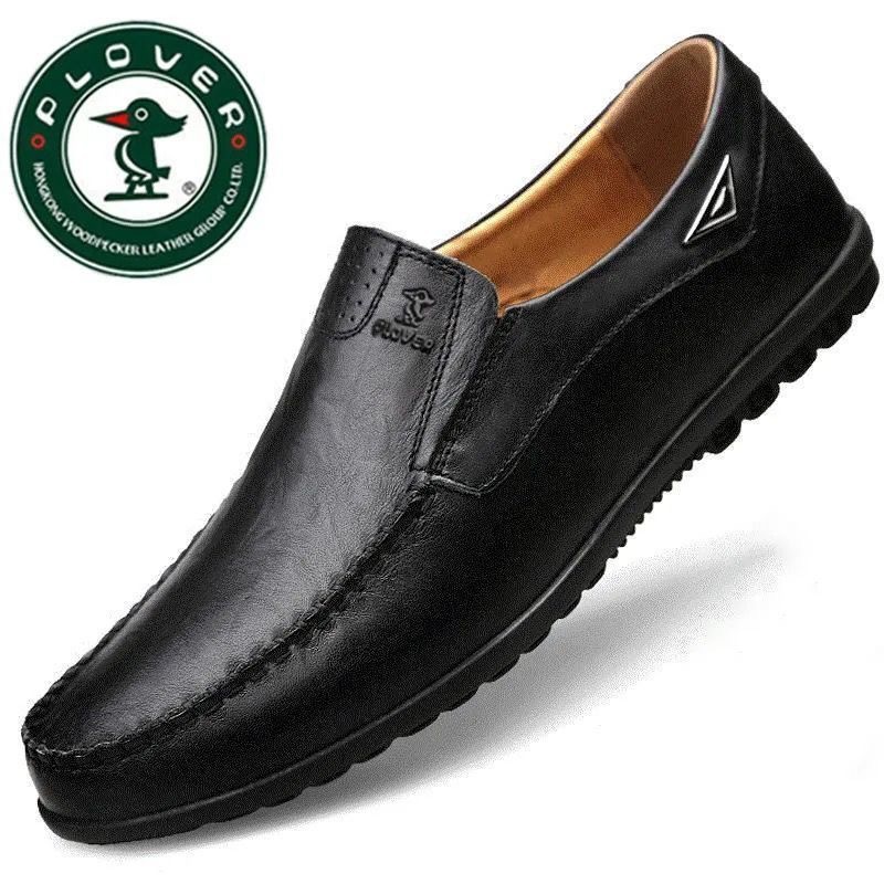 PLOVER 紳士靴本革カジュアルフラット革靴メンズソフトソール新しいスリッポン通気性夏のメンズ革靴男性