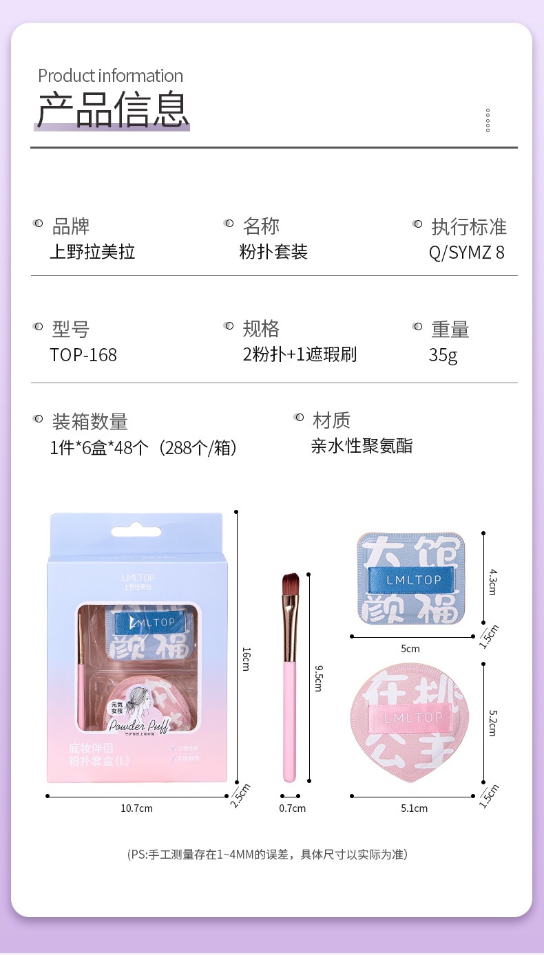 仕様 TOP-168 パウダーパフセット(Sサイズ),TOP-169 パウダーパフセット(Lサイズ)