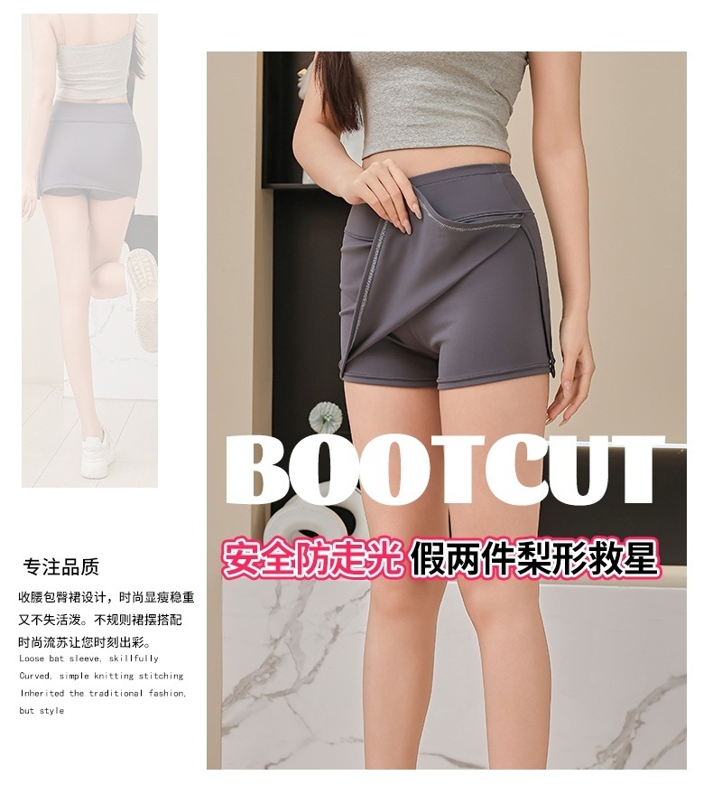 プラスサイズ、速乾性、露出防止、偽ツーピースキュロット、ファットmmスポーツフィットネスヨガウェア、ランニングショーツとスカート