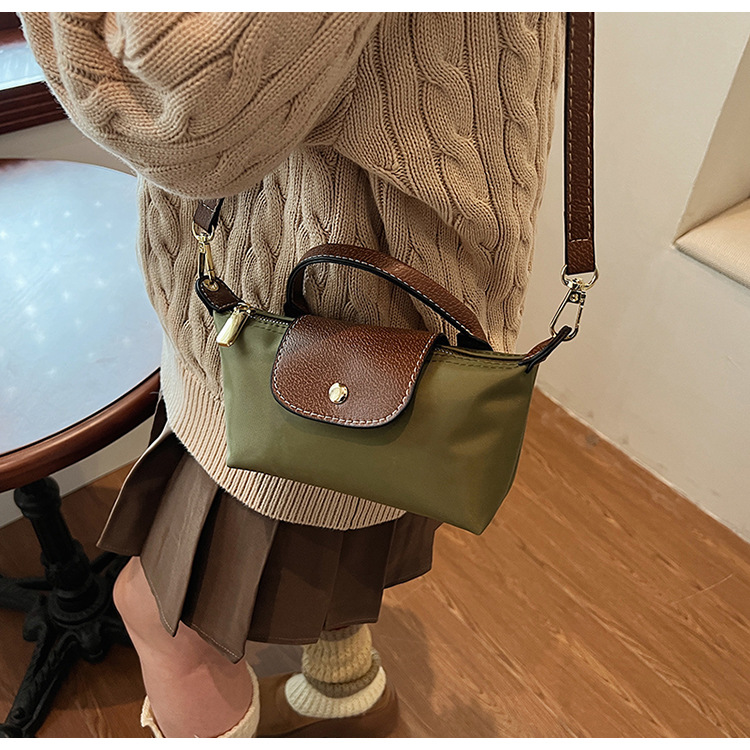 小さな餃子型バッグ、ナイロン製、コントラストカラー、シンプルなショルダーバッグ、斜め掛けバッグ、携帯電話用化粧ポーチ、女性用、軽量、ストリートファッション