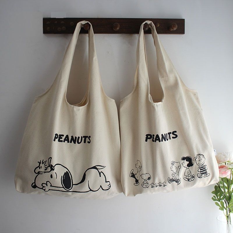 キャンバスバッグ女性の夏の大容量バッグ 2023 新しいトレンディな漫画スヌーピーハンドバッグ多用途ショルダートートバッグ