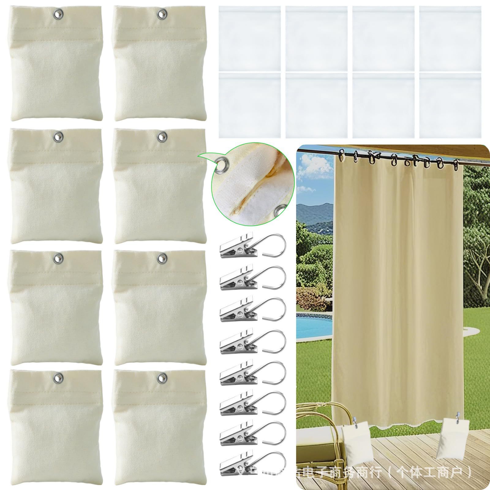 屋外カーテン重量袋固定クリップ付きカーテン加重袋カーテン底部重量袋は凉亭カーテンに使われている