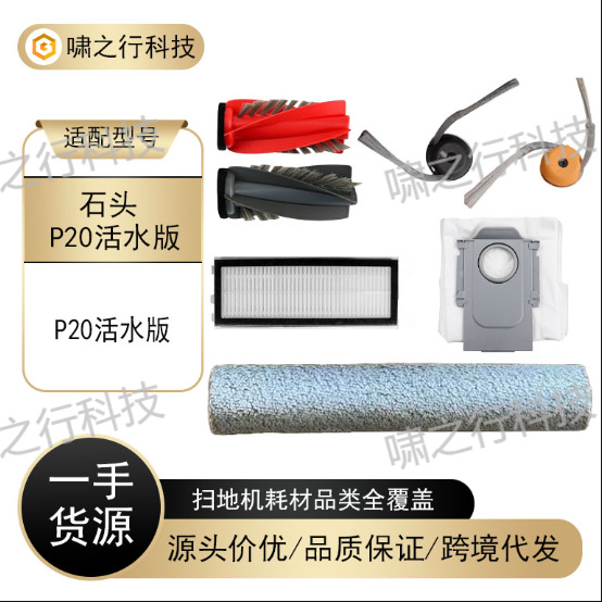适配石头P20活水版滚筒扫地机器人双主刷边刷滤网滚筒抹布集尘