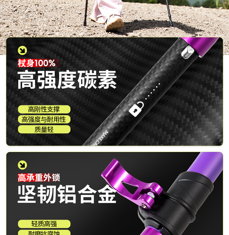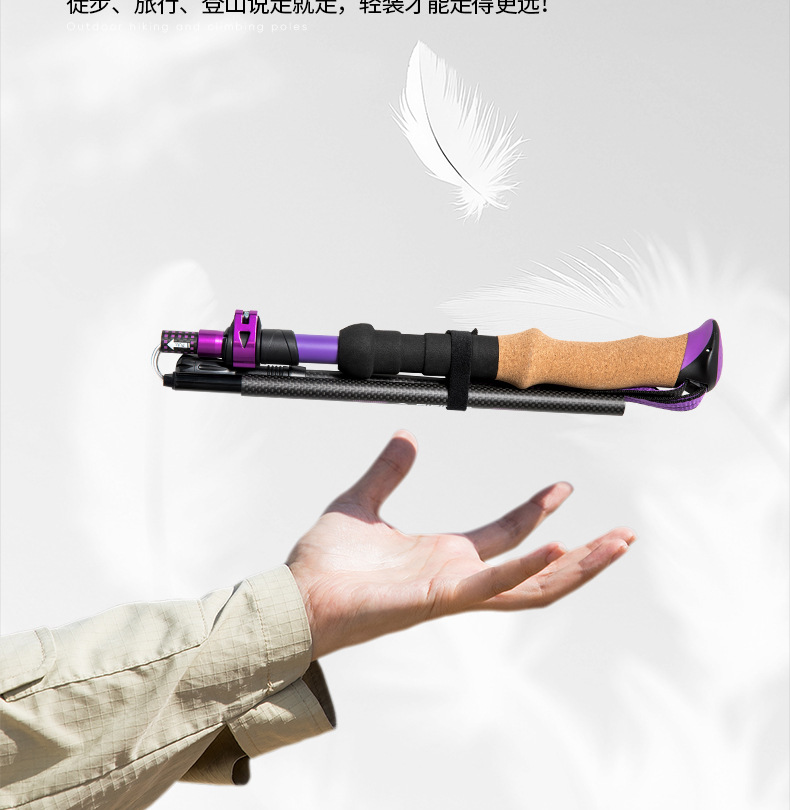 直送カーボンファイバー超軽量伸縮式登山杖、軽量で持ち運びやすいアウトドア登山・ハイキング用滑り止め杖