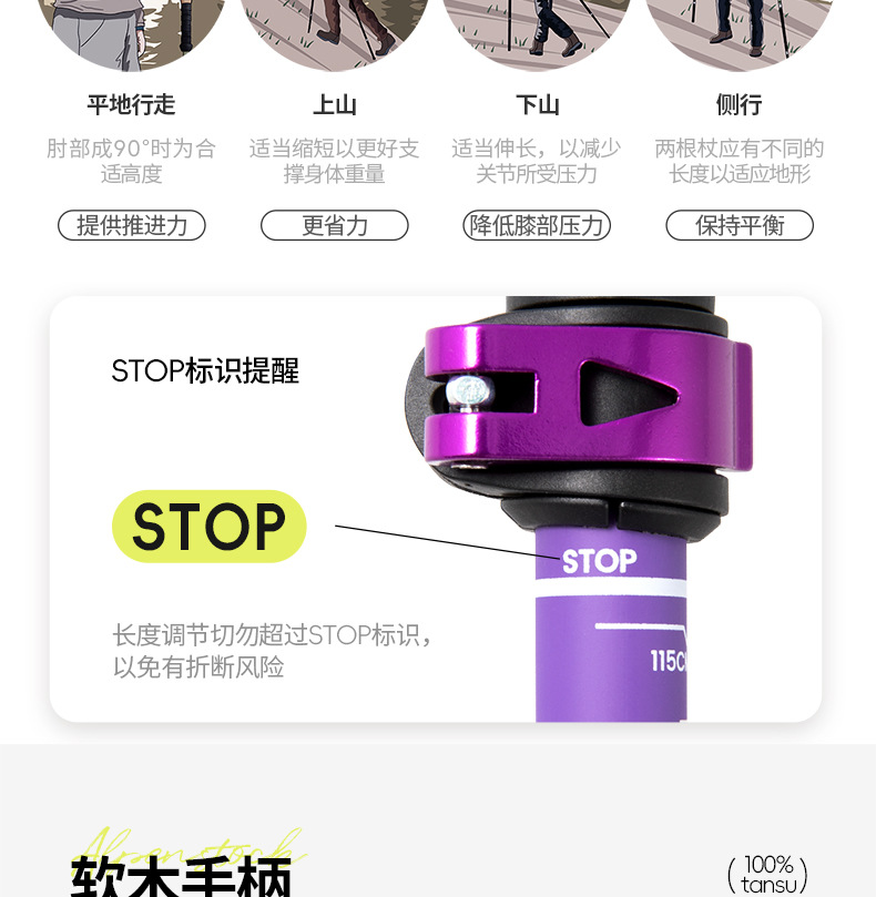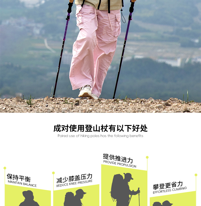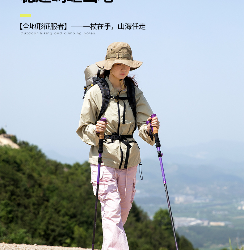 北山狼新型アウトドア超軽量アルミ合金外ロック登山杖伸縮可能徒歩登山杖男女杖
