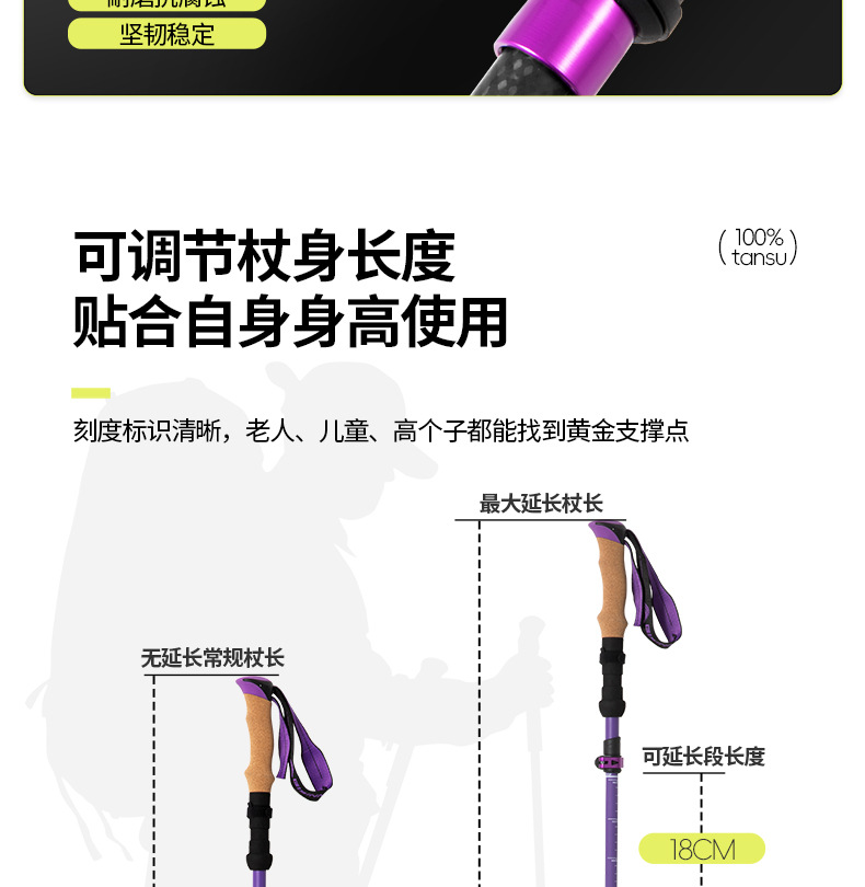 北山狼炭素繊維登山杖炭素素超軽量伸縮杖男女登山装備専門屋外徒歩杖