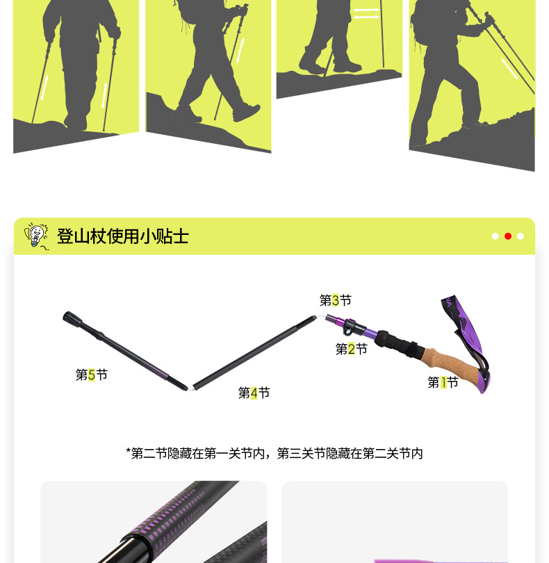 T800碳布碳钎维登山杖折叠碳纤维越野跑登山杖手杖专业户外跑步行