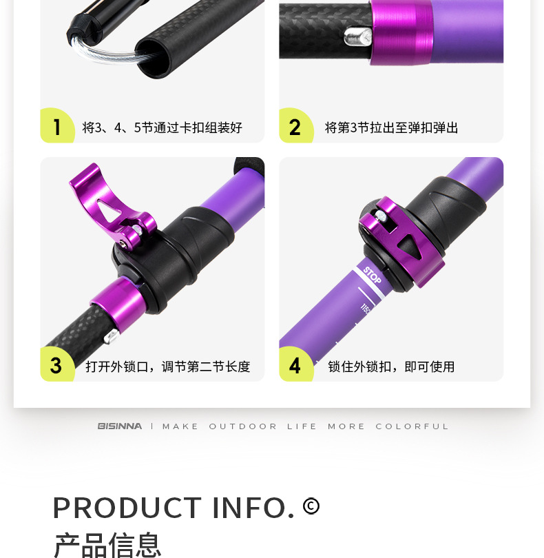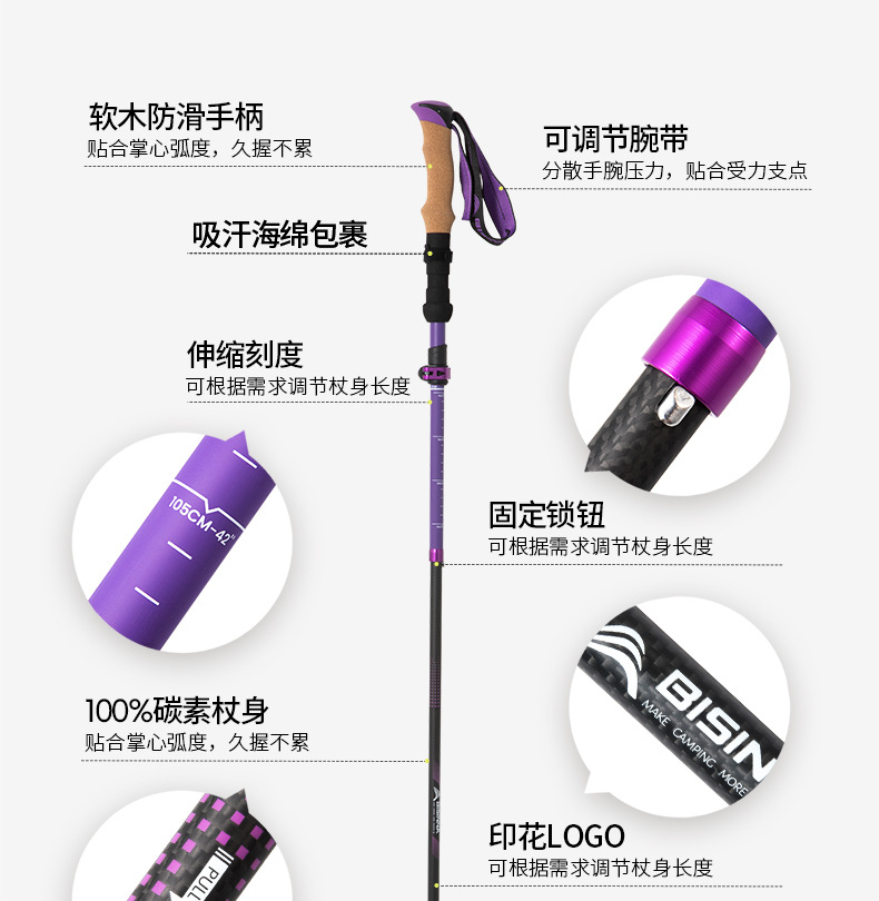 Beishanlang 登山杖カーボン超軽量伸縮登山用品女性のプロの屋外カーボンファイバー折りたたみハイキング杖