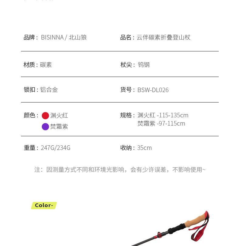 北山狼クロスカントリーステッキ専門アウトドア超軽量炭素繊維伸縮折りたたみステッキ男女軽量装備登山ステッキ