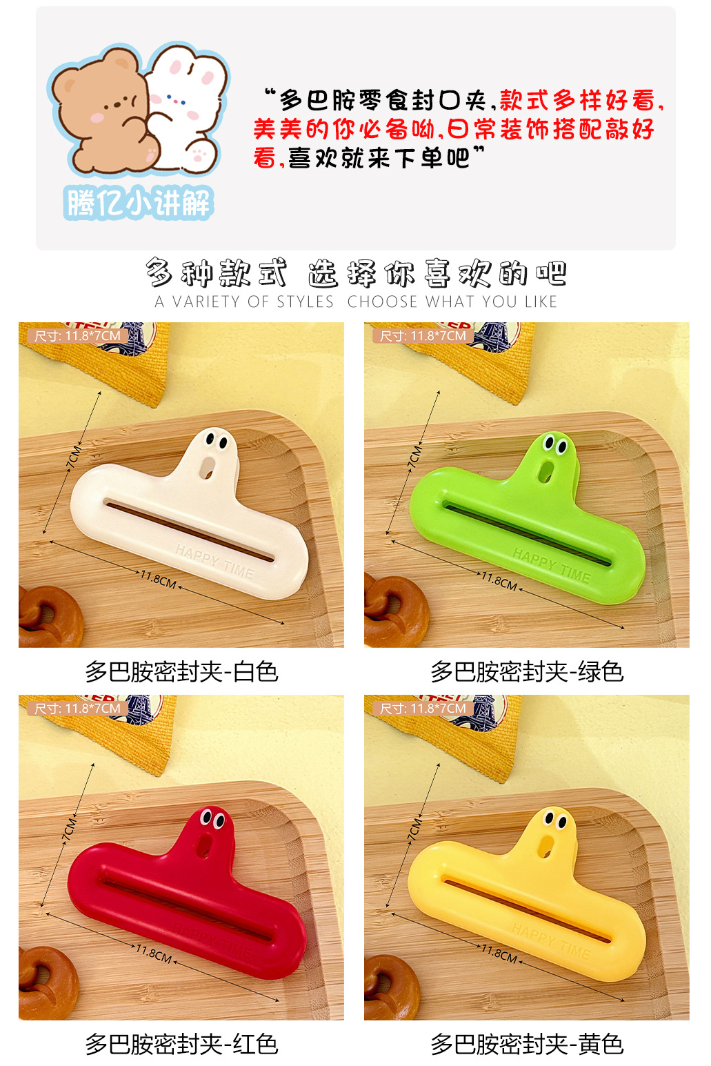 卡通封口夹防潮食品封口夹家用多功能零食夹子厨房食物保鲜密封夹