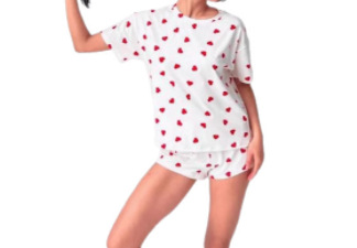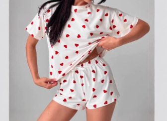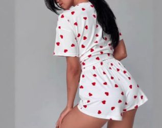 クロスボーダーヨーロッパとアメリカのスリムな新しいパジャマ甘いホットガールラウンドネックラブプリントソフト半袖女性のホームウェアカジュアルウェア