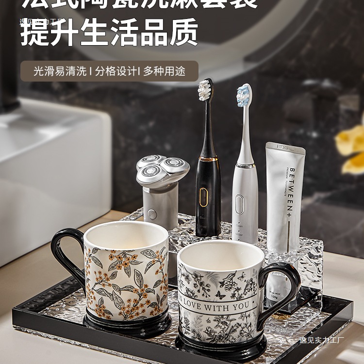 軽くて豪華なフレンチマウスウォッシュカップセラミックカップル歯磨きカップホームバスルーム洗面台歯科シリンダー収納ラックセット