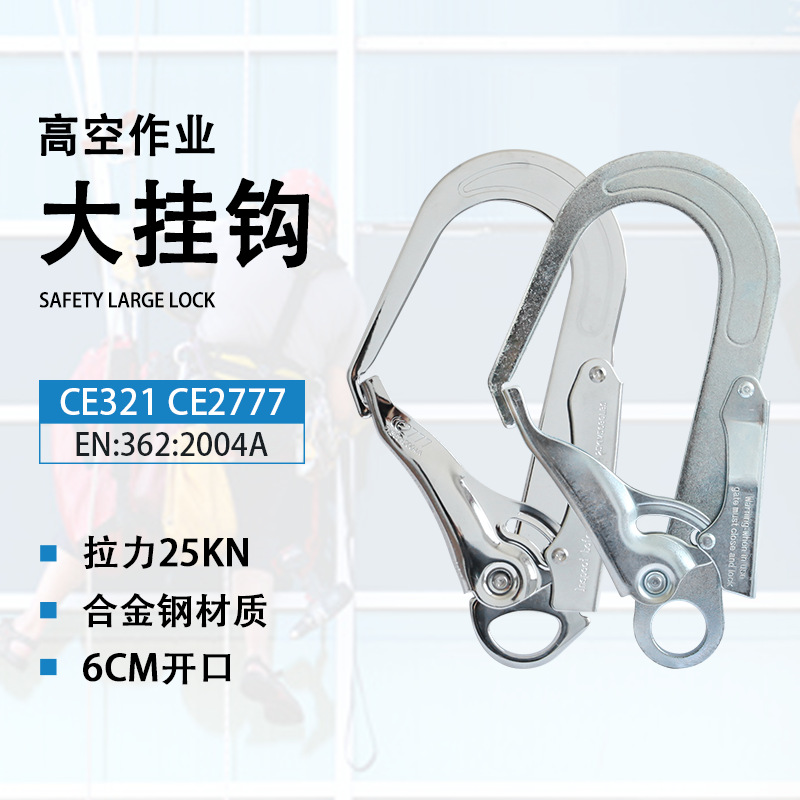 屋外登山高所作業合金鋼大フック6cm登山補助落下防止保険バックルフック