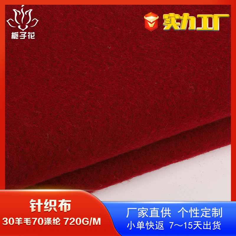 严选70涤纶羊毛混纺针织面料 毛呢大衣面料源头厂家红色呢子面料