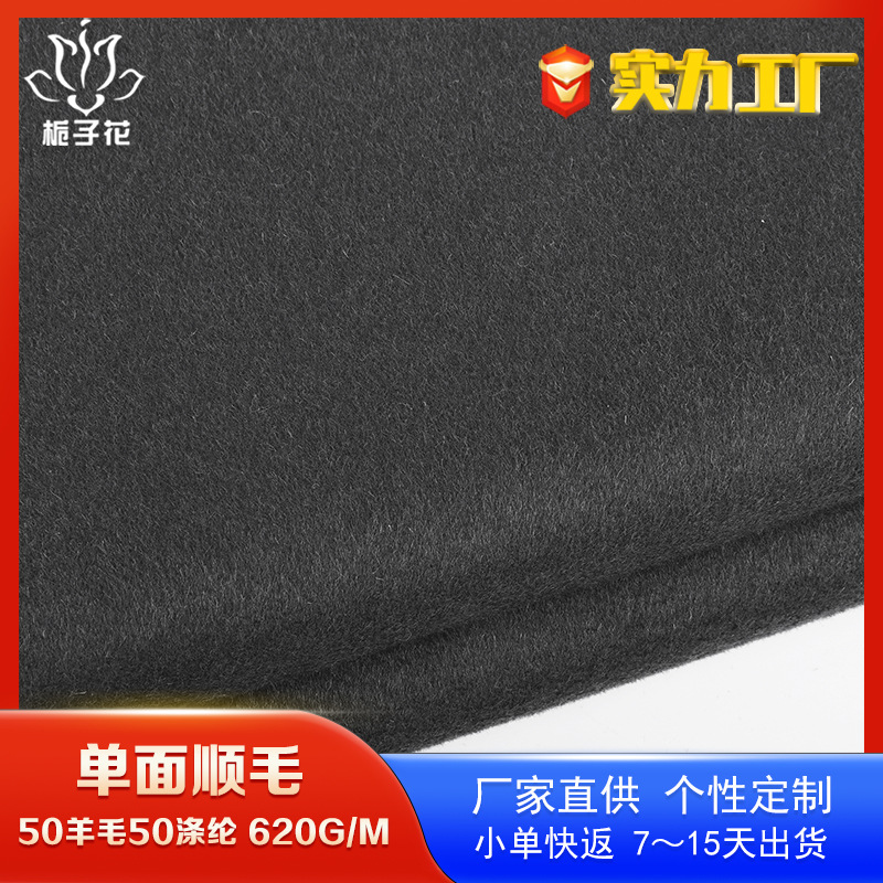 严选50羊毛50涤纶混纺单面呢面料 呢子大衣布料源头厂家顺毛布料