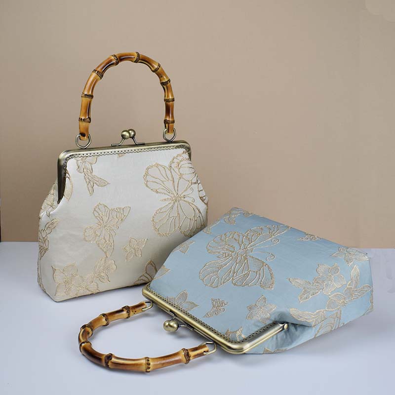 新中式手作り口金DIY素材パック レトロ竹製ハンドル錦織旗袍口金バッグ ハンドバッグ 家庭用布製品