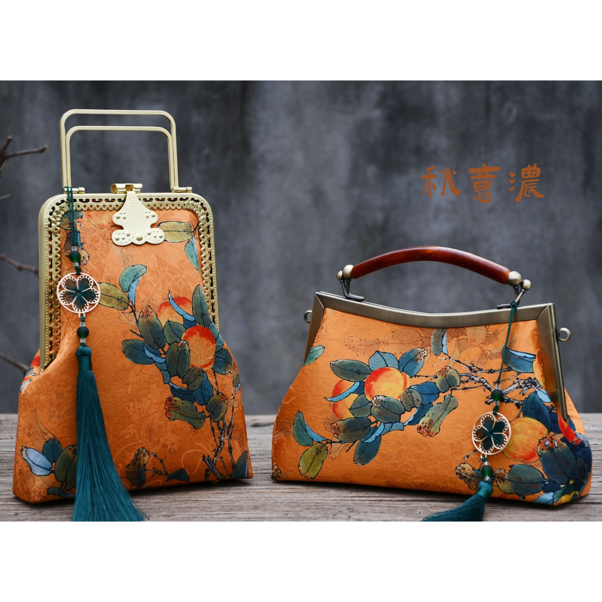 翁楷柿柿如意-花萝旗袍包中国风包非遗包口金包材料包