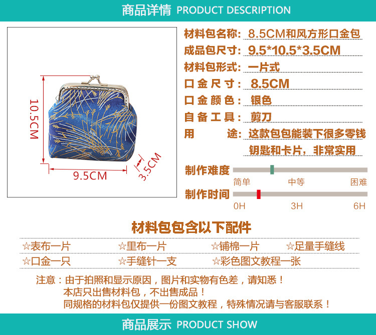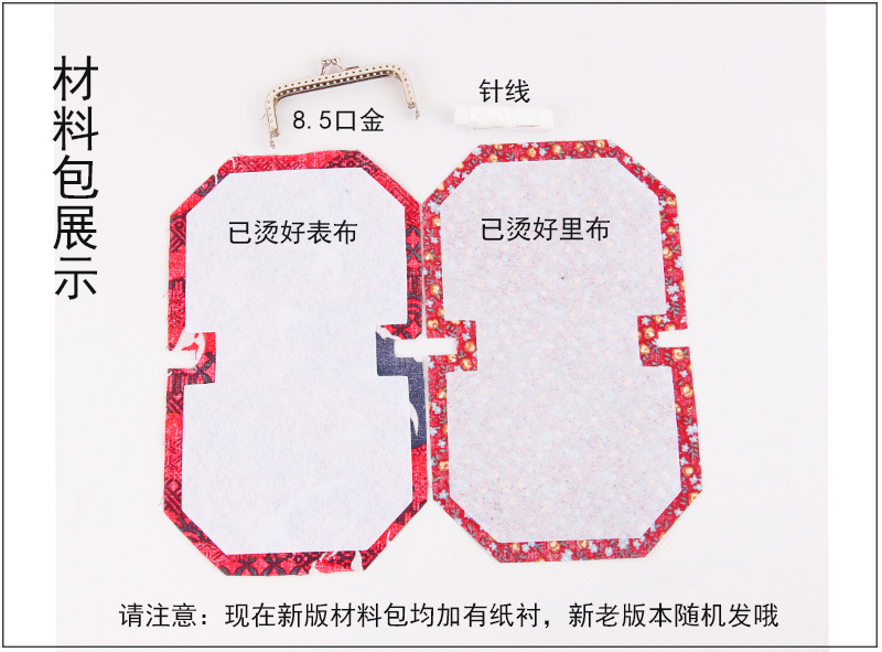 翁楷無裁断アイロン初心者DIY材料バッグ8.5cm一枚口金バッグ小銭入れ複数選択