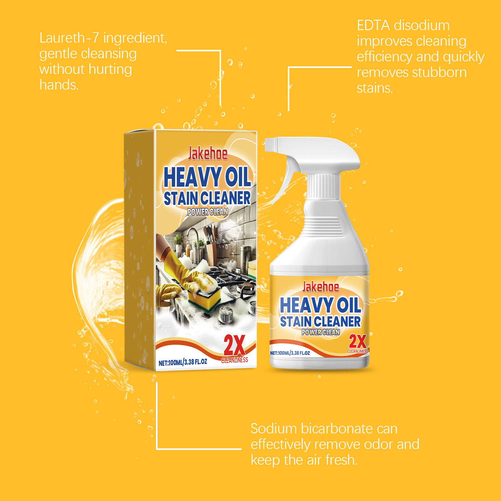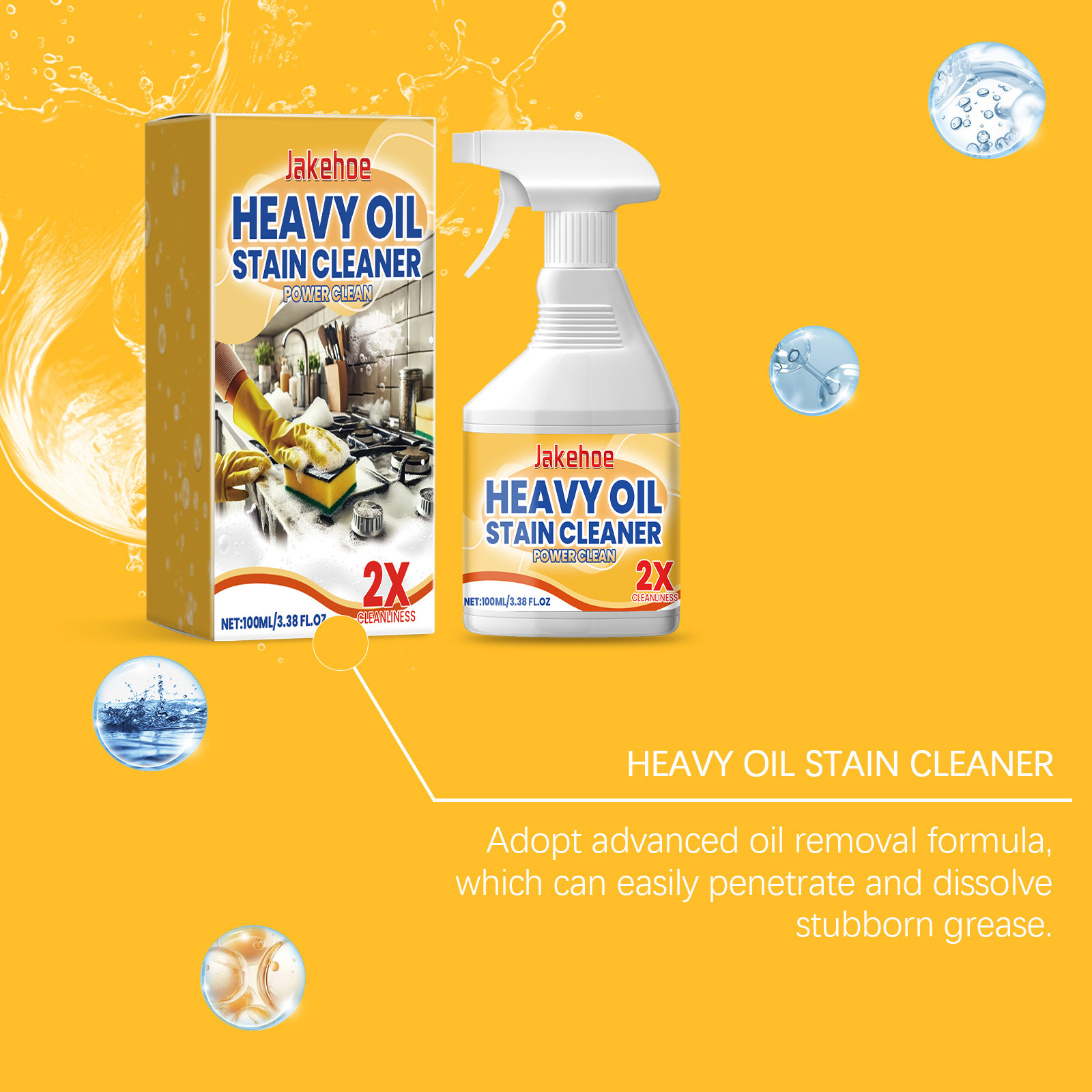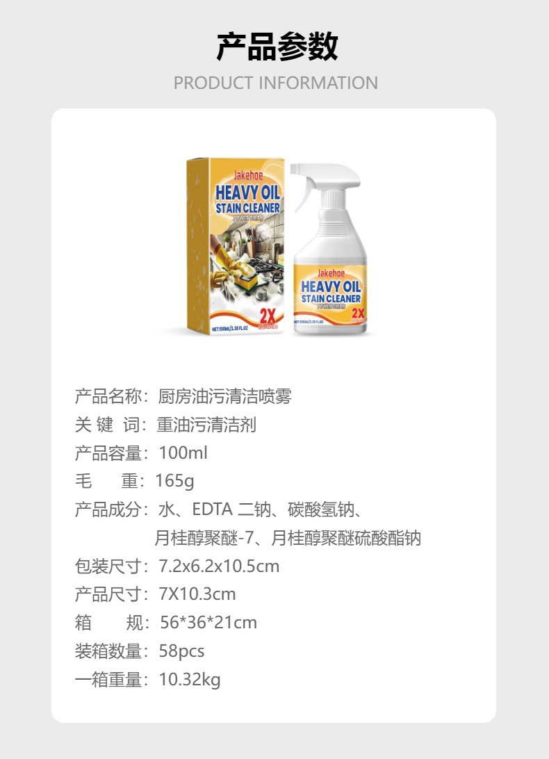 JAKEHOE キッチン油汚れ洗浄スプレー 重油汚れ洗浄剤 レンジフード コンロ キッチン用品除染洗浄