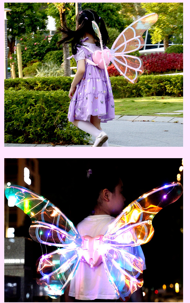 クロスボーダー新製品発光翼自動音楽ライト電動翼子供プリンセス蝶の羽誕生日ギフト