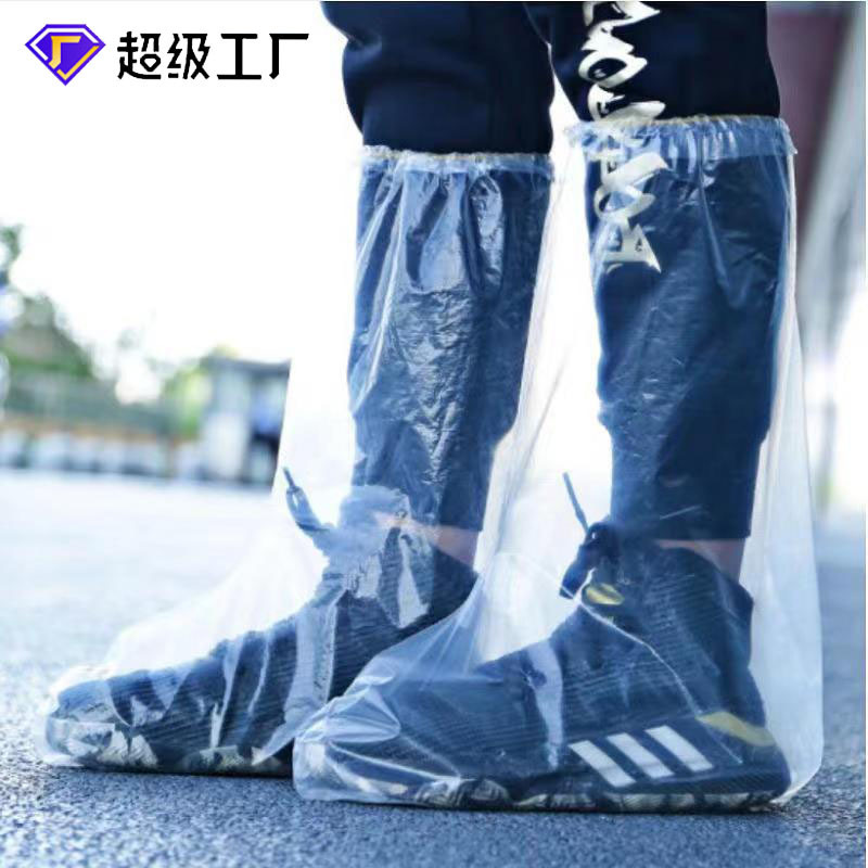 雨の日用の厚みのあるロングチューブ使い捨てブーツカバー、拡張された農場用靴カバー、屋外ラフティング耐摩耗性プラスチックフットカバー