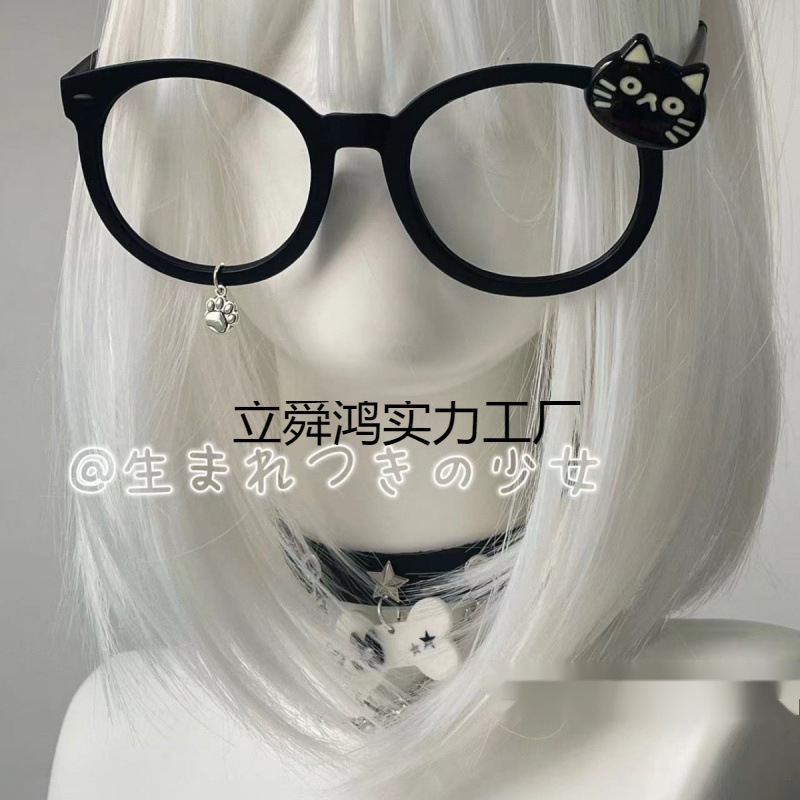 日本のかわいい甘い水色ピンク猫の爪メガネフレーム顔を大きく見せる小さなサブカルチャーかわいい写真二次元小さな丸いフレーム