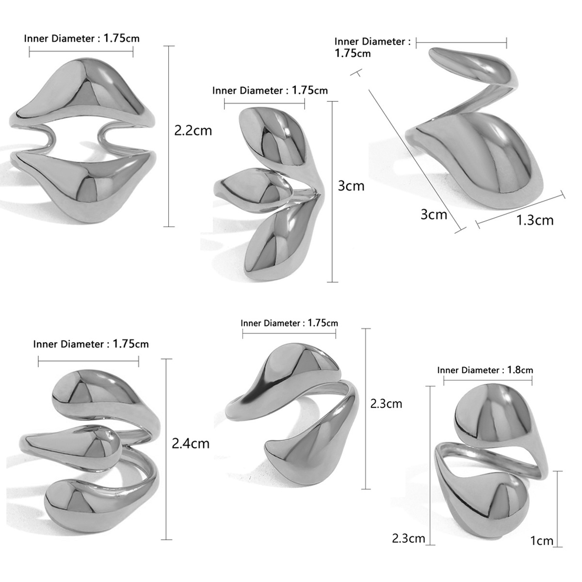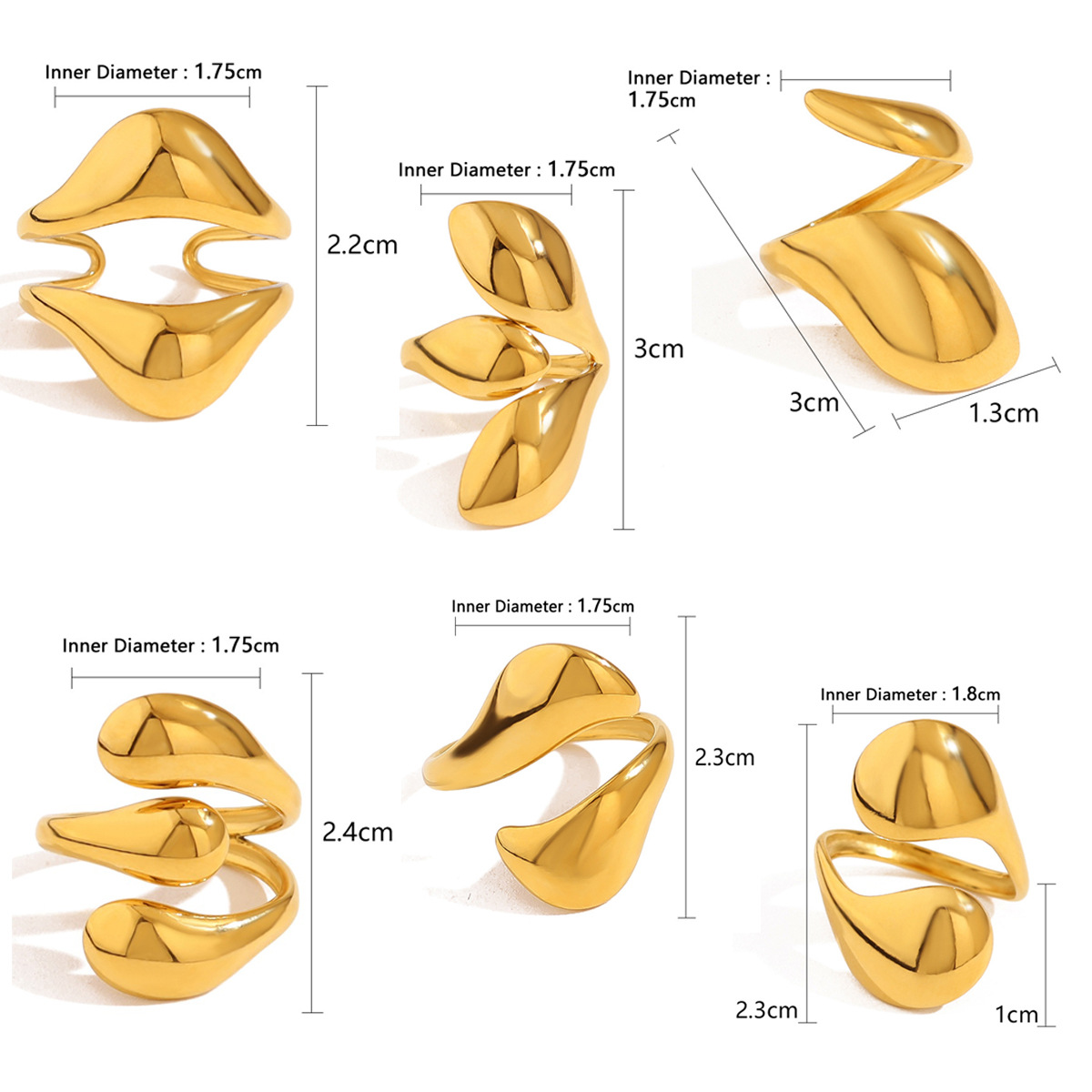 18K ゴールド溶岩ミラーオープンリングヨーロッパとアメリカンスタイルのファッション不規則な幾何学的な曲線合金リングセット女性用