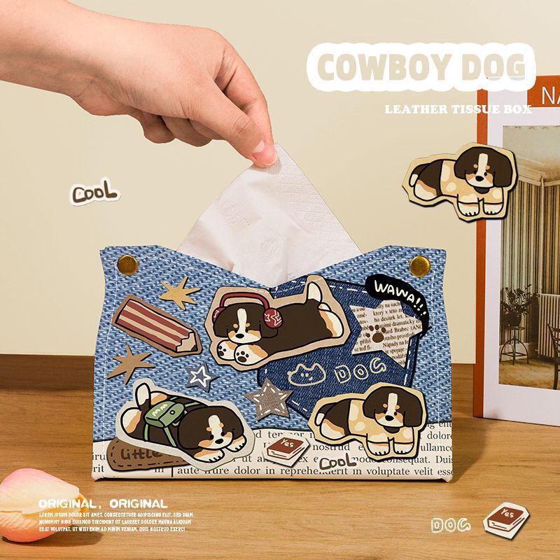 カウボーイ子犬ティッシュボックスホームリビングルームクリエイティブティッシュボックスライト高級レザーハイエンド紙ティッシュボックスナプスタイプトイレ
