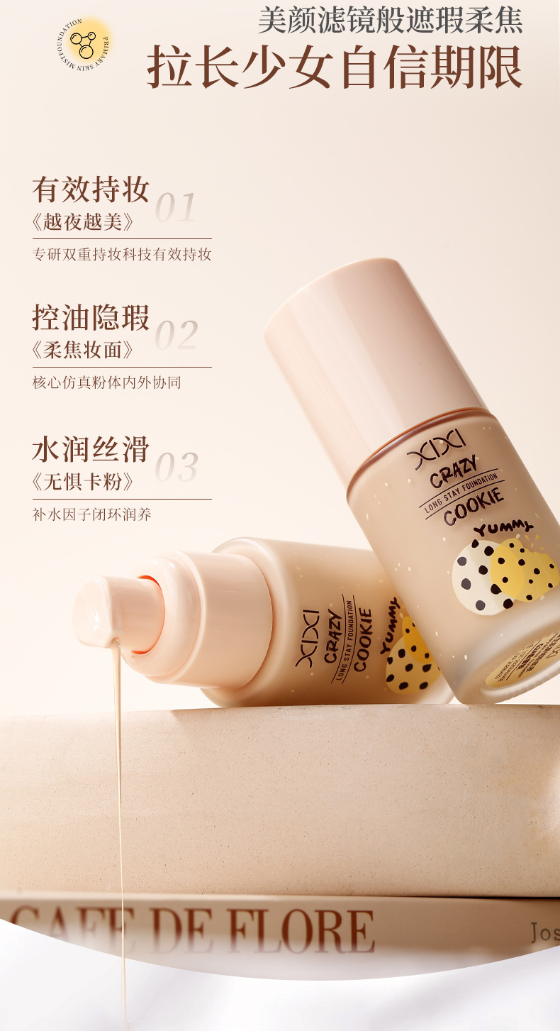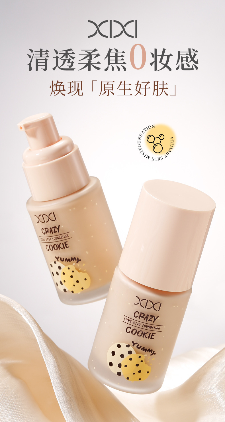 xixi原生柔雾细磨粉底液粉质细腻自然轻盈新手持妆控油滋养粉底液