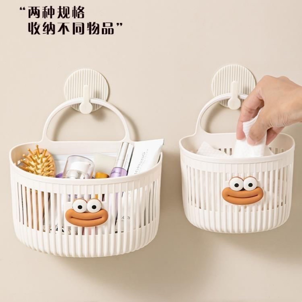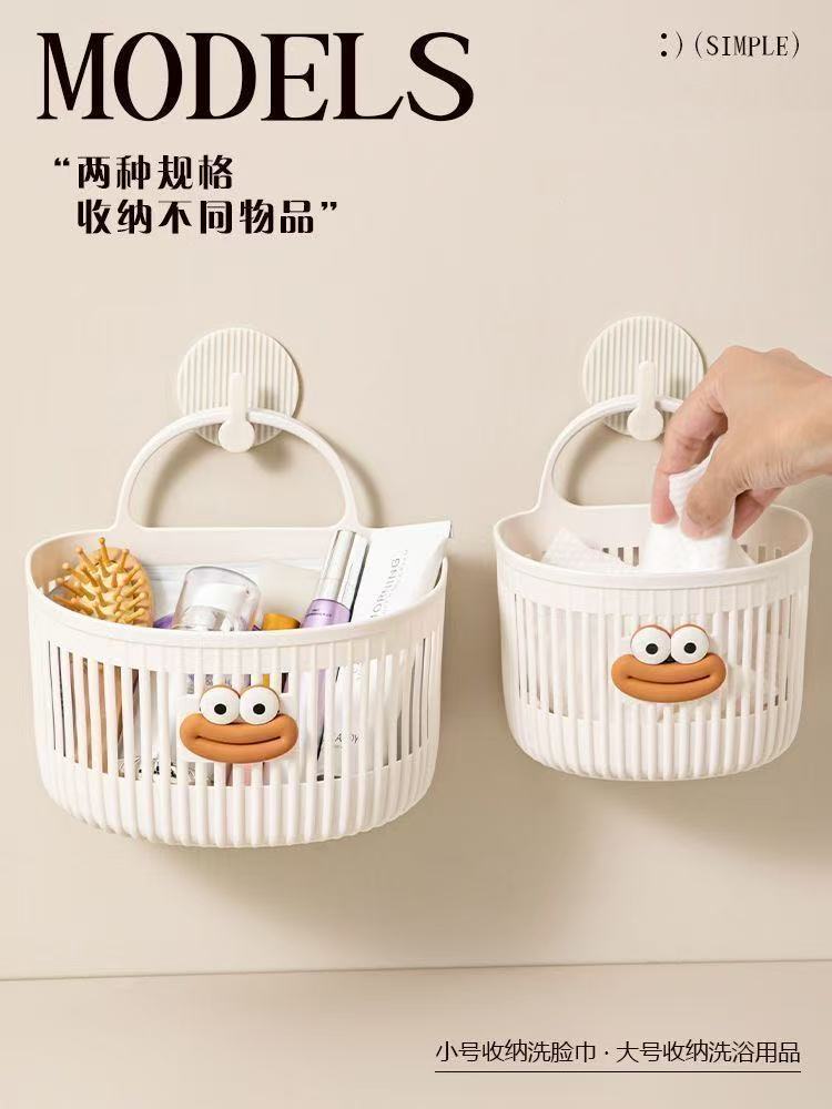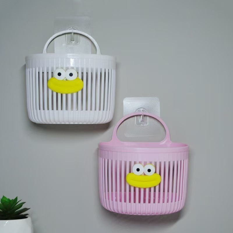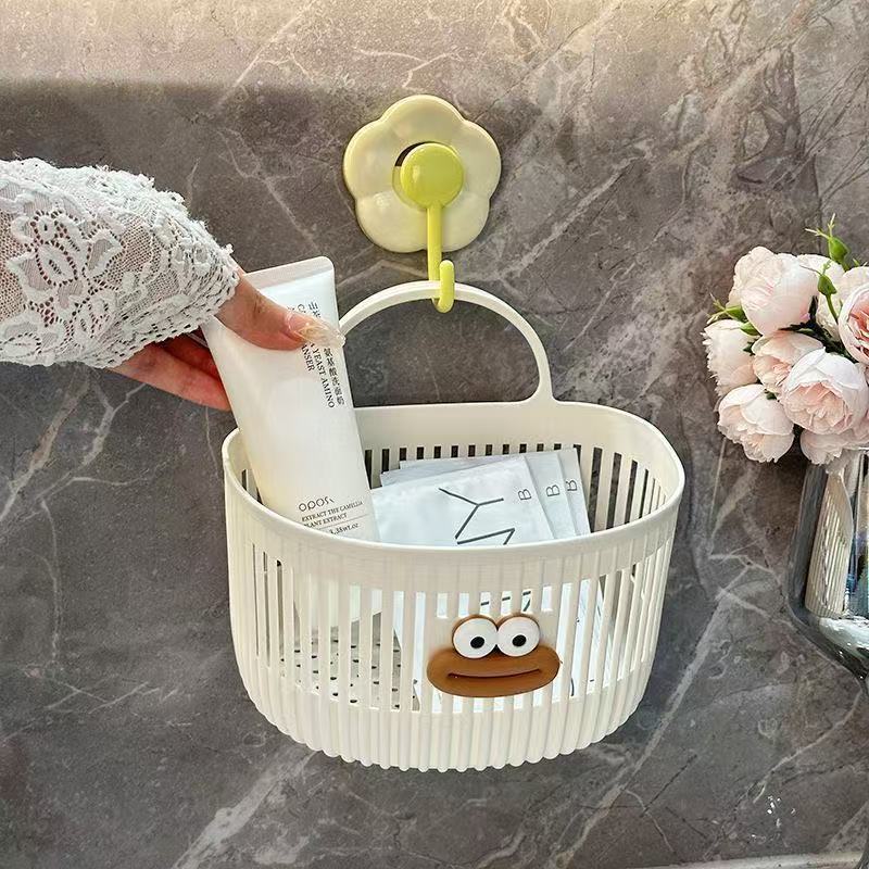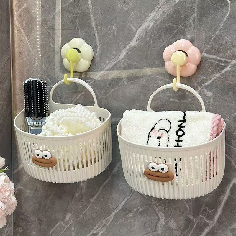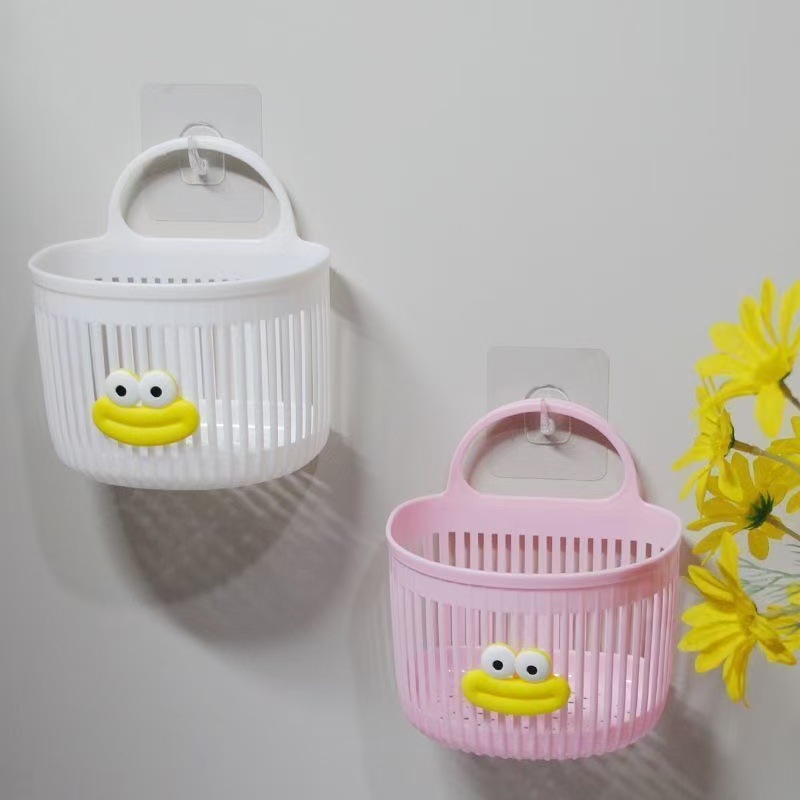可爱壁挂式收纳篮多功能厨房浴室卫生间小挂篮免打孔挂墙置物架子