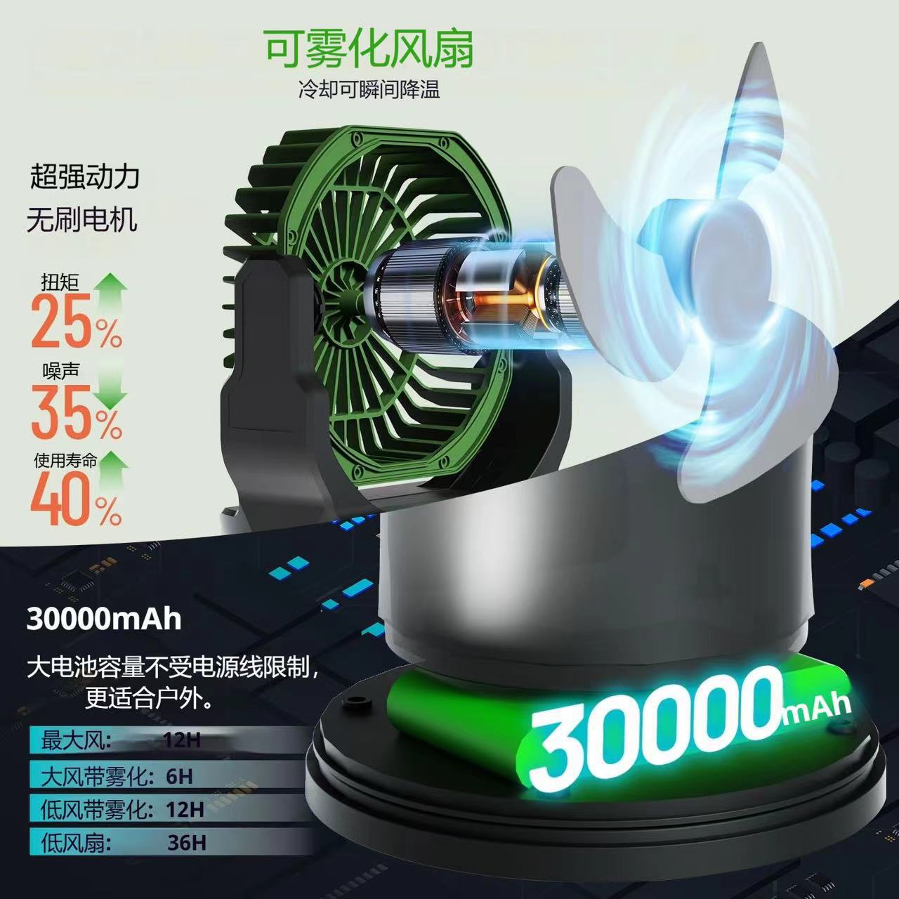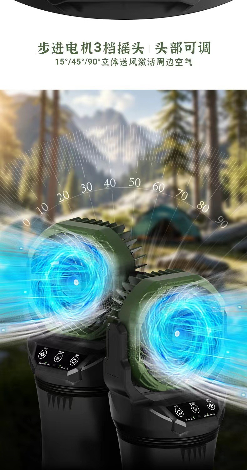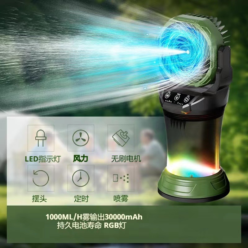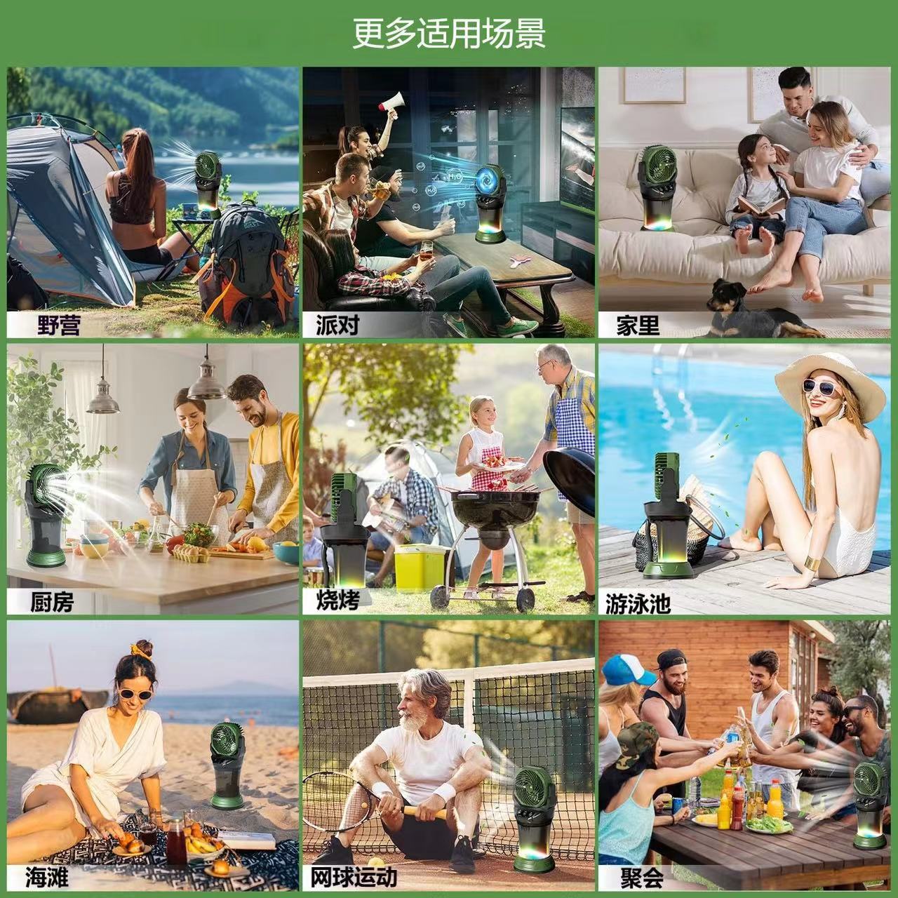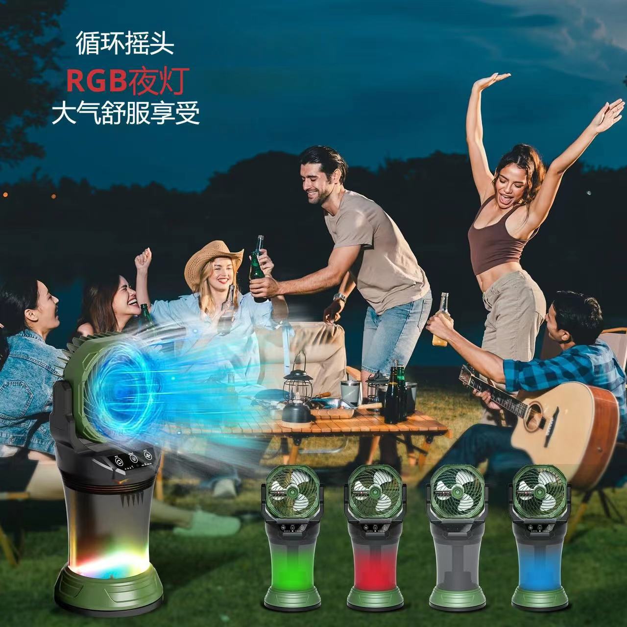 国境を越えた人気のポータブル多機能シェイキングヘッド充電スプレー屋外キャンプ自動シェイキングヘッド LED ライトファン