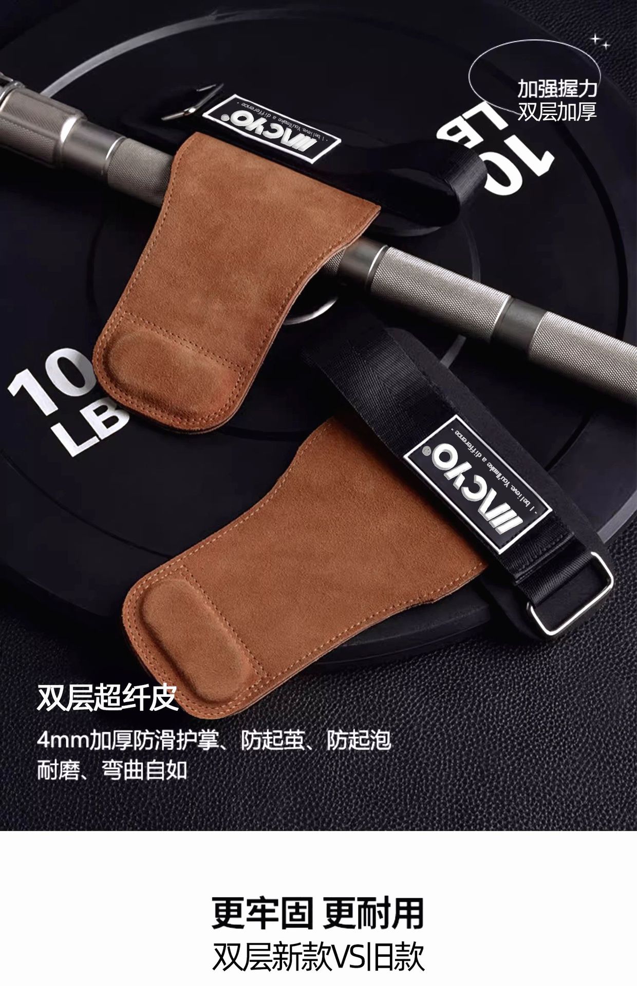 クロスボーダー牛革製筋トレベルト、デッドリフト、懸垂、手のひら保護、フィットネス、シングルバー、滑り止め、スポーツリストバンド、卸売、男性用