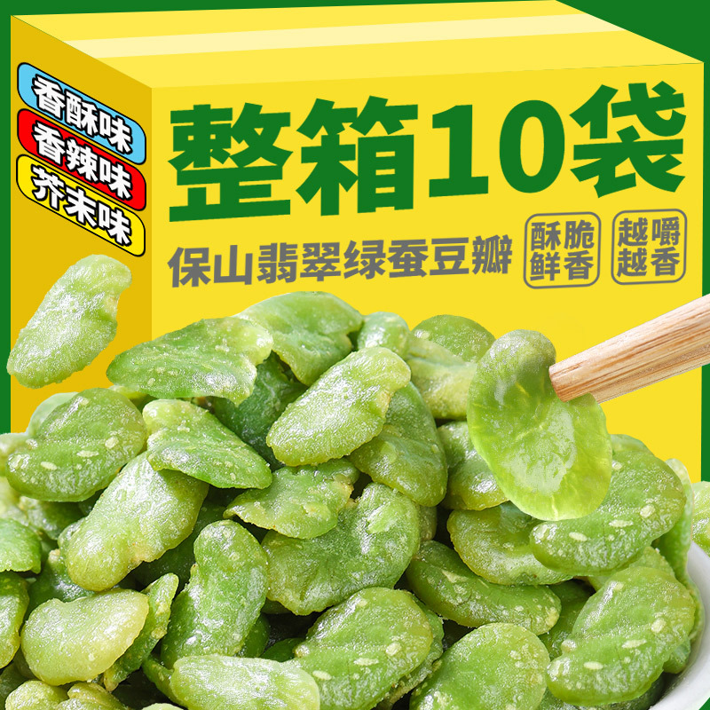 云南保山绿心蚕豆瓣批发芥末香酥香辣味油炸无壳休闲零食绿心蚕豆