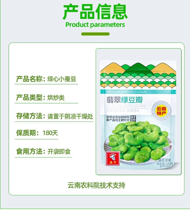 農科院雲南保山緑心蚕豆弁翡翠蚕豆無殻香ショートニングマスタード味蘭花豆レジャースナック