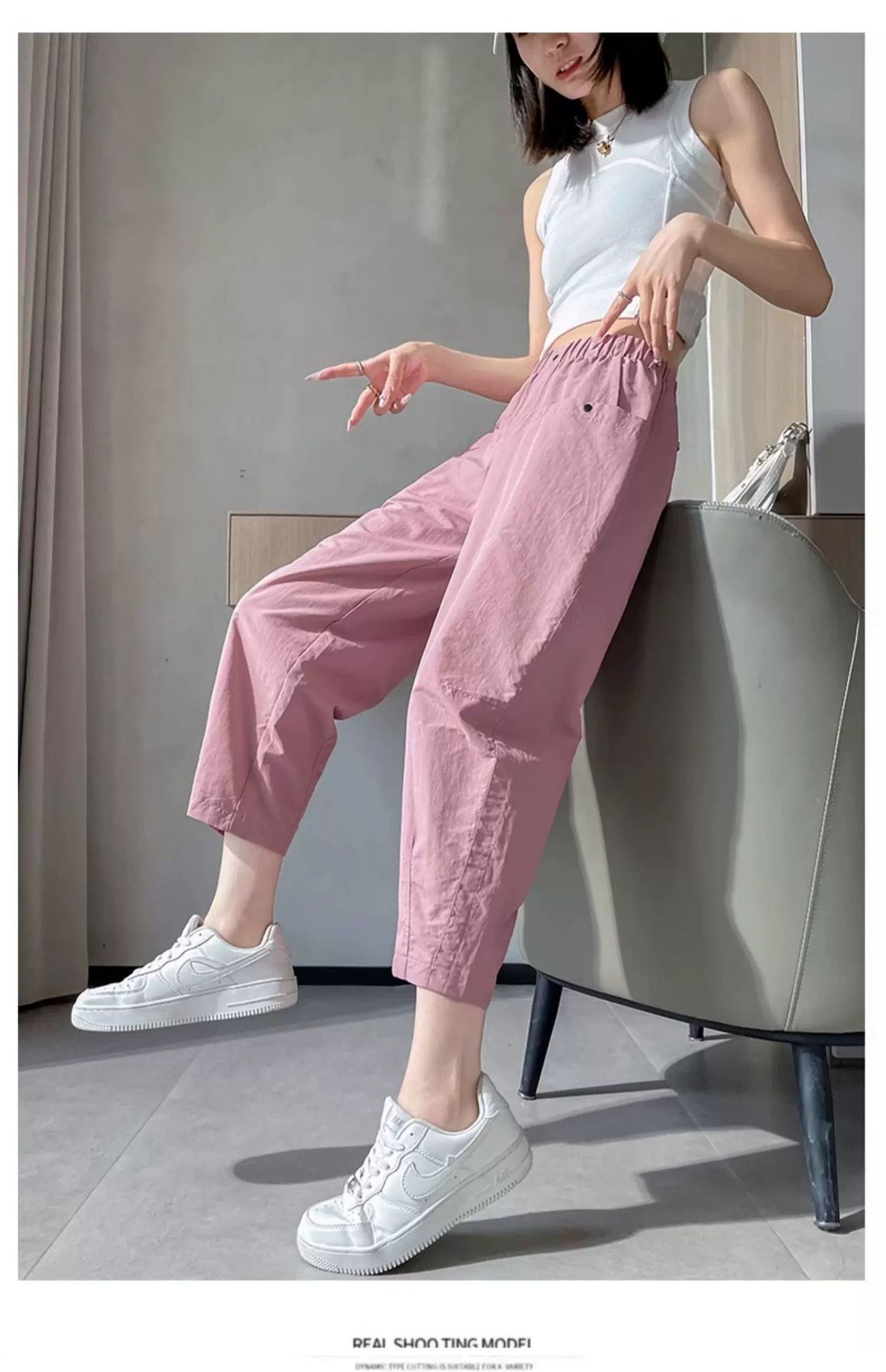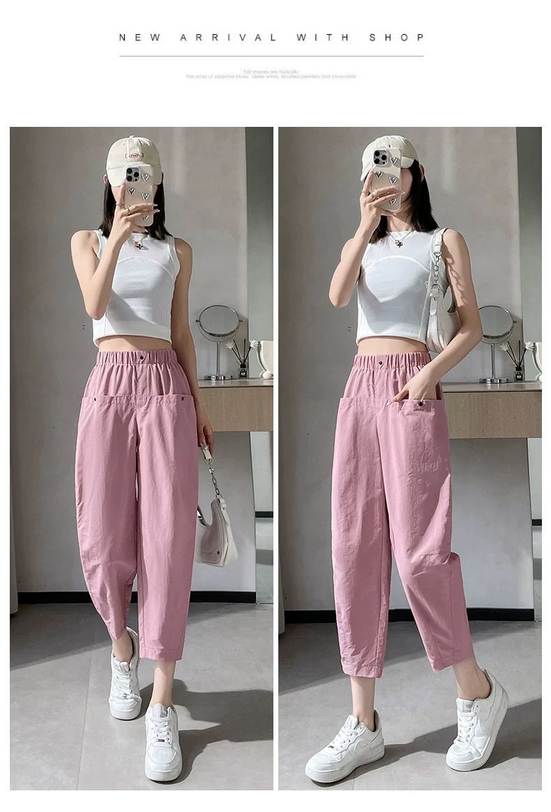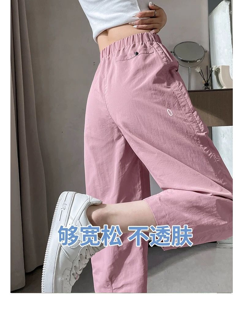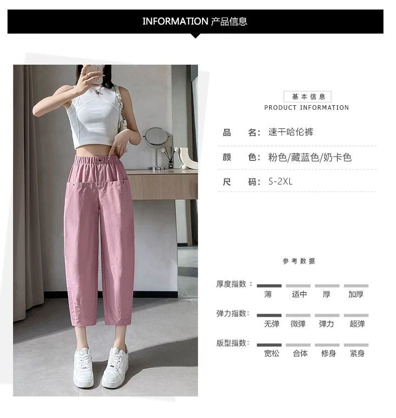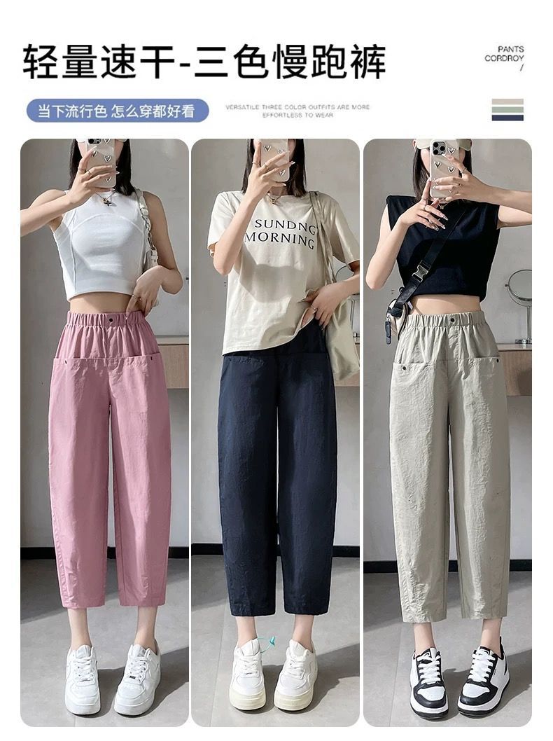 女性用速乾9点パンツ2025夏薄手スリム万能小足ハーレムパンツハイウエストゆったりカジュアルパンツ