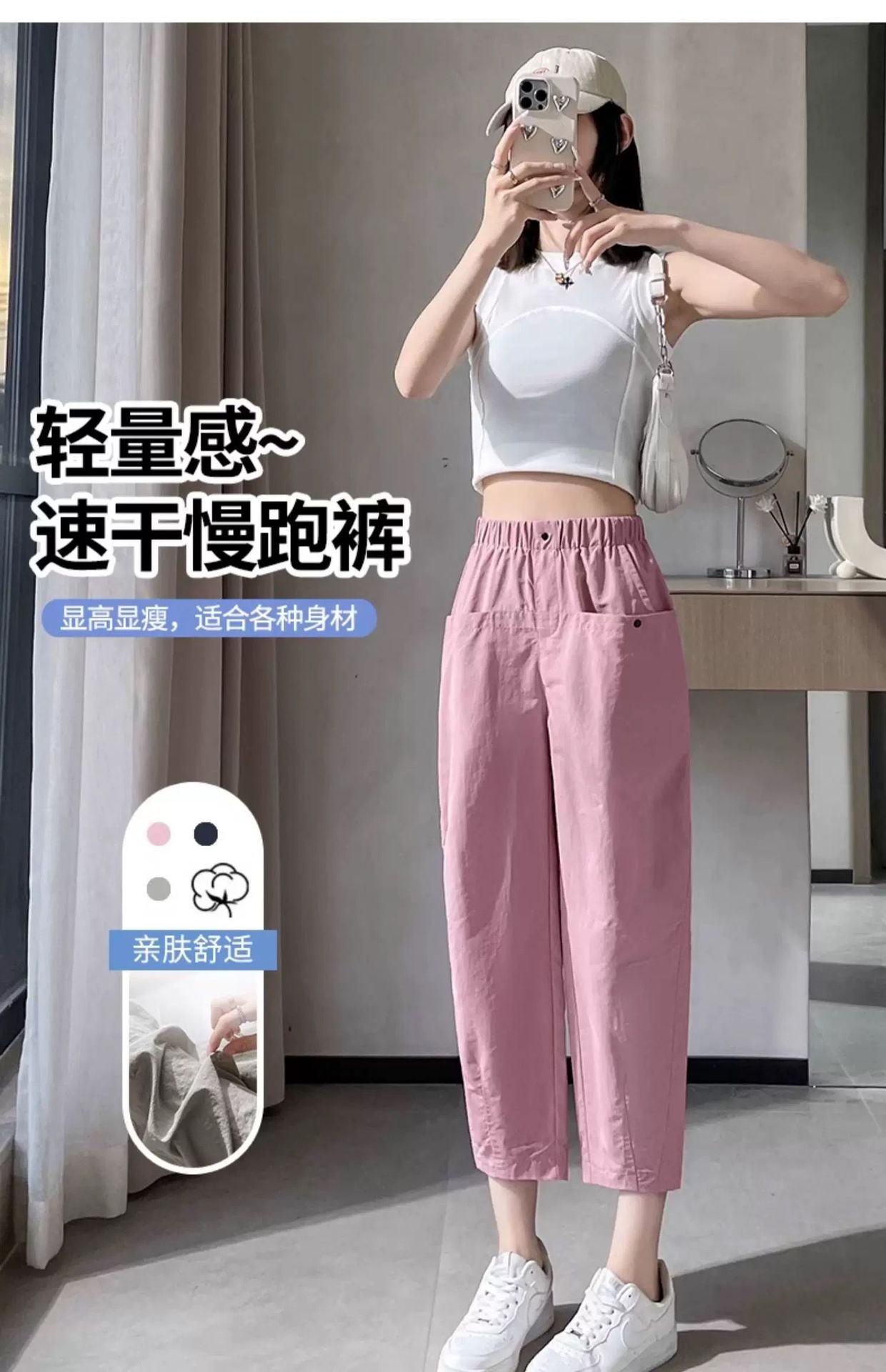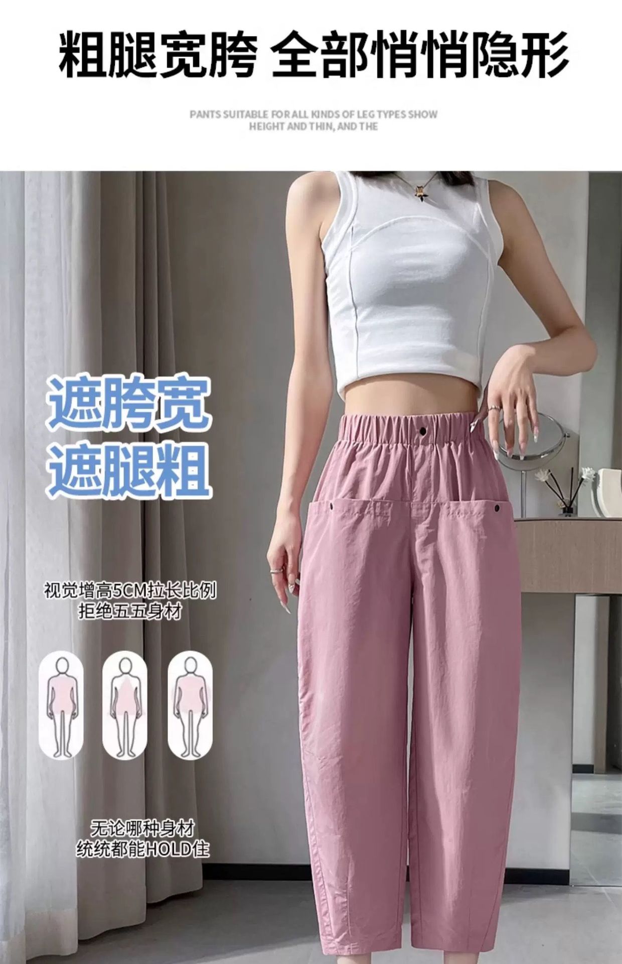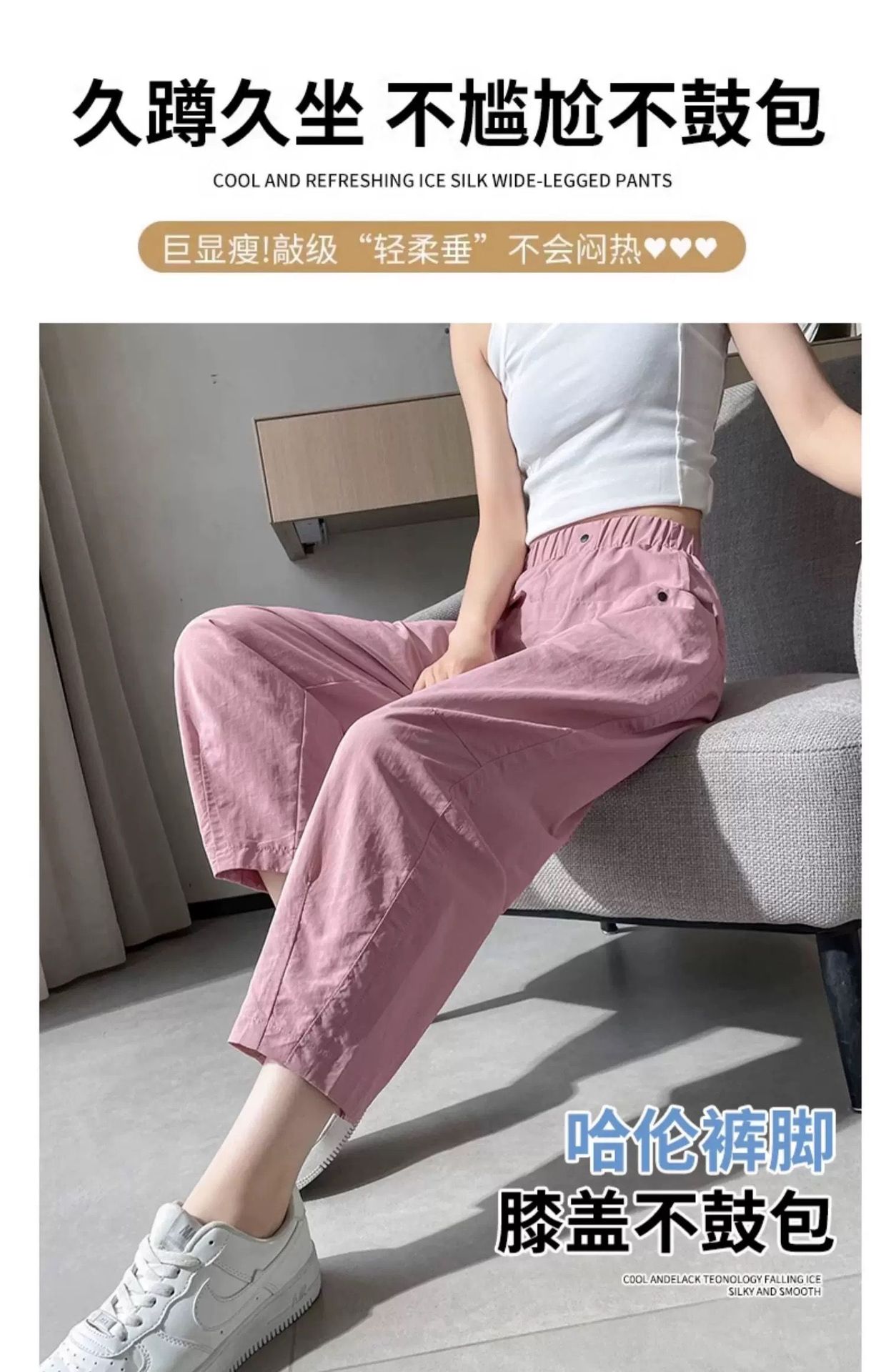 女性用速乾9点パンツ2025夏薄手スリム万能小足ハーレムパンツハイウエストゆったりカジュアルパンツ
