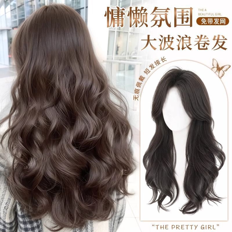 假发全头套女不用戴发网头顶补发增发量免发网大波浪长卷发假发套