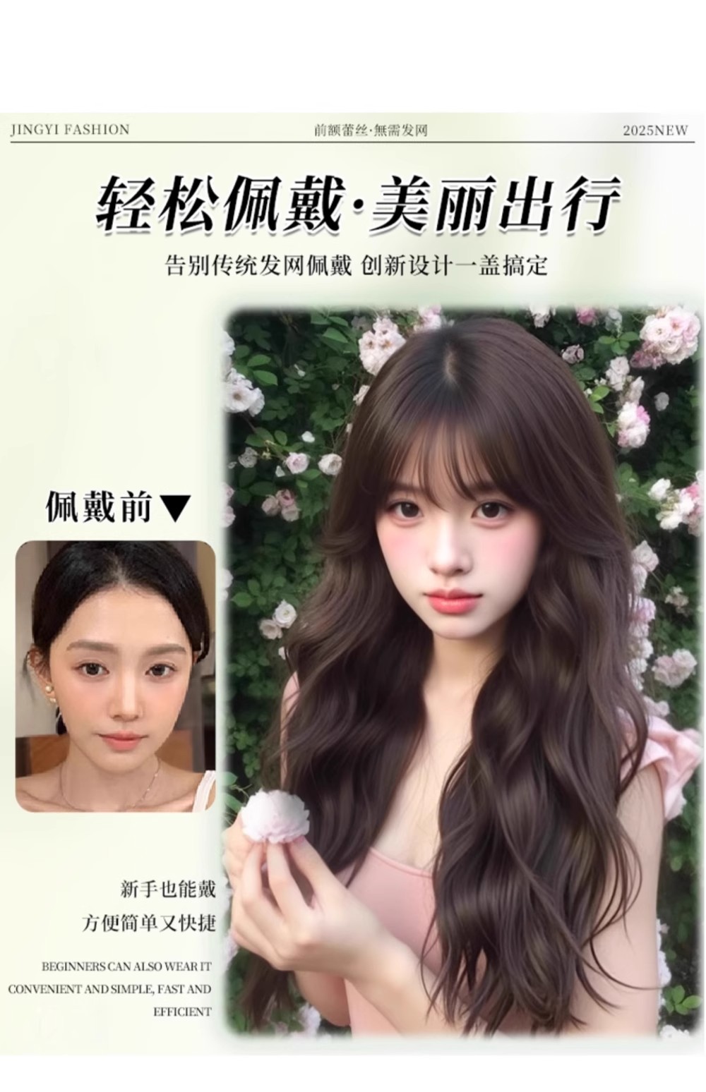 不用戴发网假发女全头套带前额蕾丝仿真卷发头顶补发大面积假发套