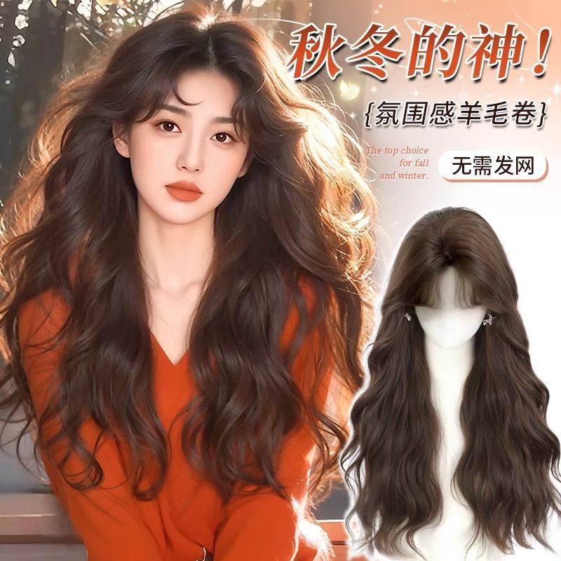 羊毛卷假发女长发减龄Lolita水波纹长卷发慵懒齐刘海蛋蛋卷全头套