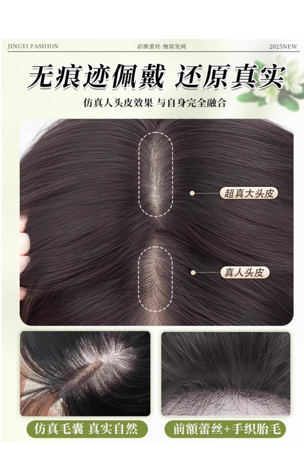 【新升级免发网】增加发量无痕超薄透气头顶补发高颅顶假发片