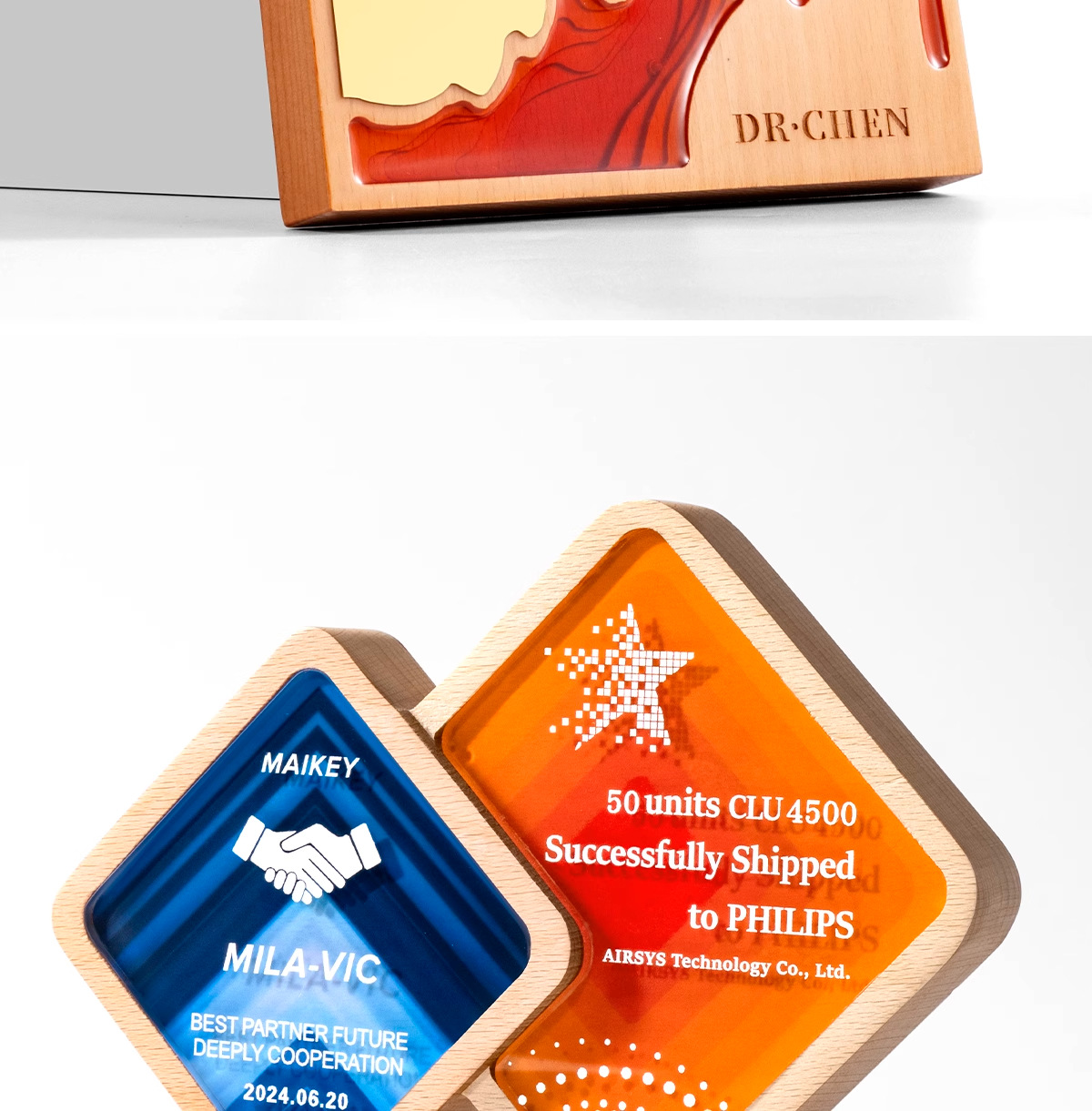 新しいエポキシ木製メダルカスタマイズされたビジネスメンバーシップ木製トレイ銅メダル名誉プラーク証明書トロフィーの制作