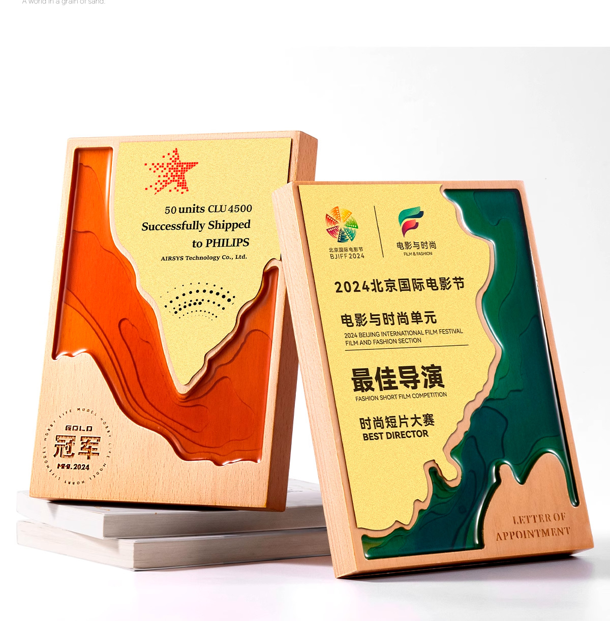 広東省木製トレイ無垢材メダル製造木製認定ディストリビューター認定製造金箔プラーク証明書
