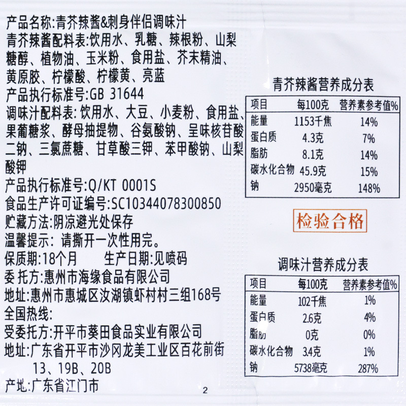 天禾青芥子辛い醤油100包二合一魚生寿司刺身包装醤油を買ってマスタードを買う